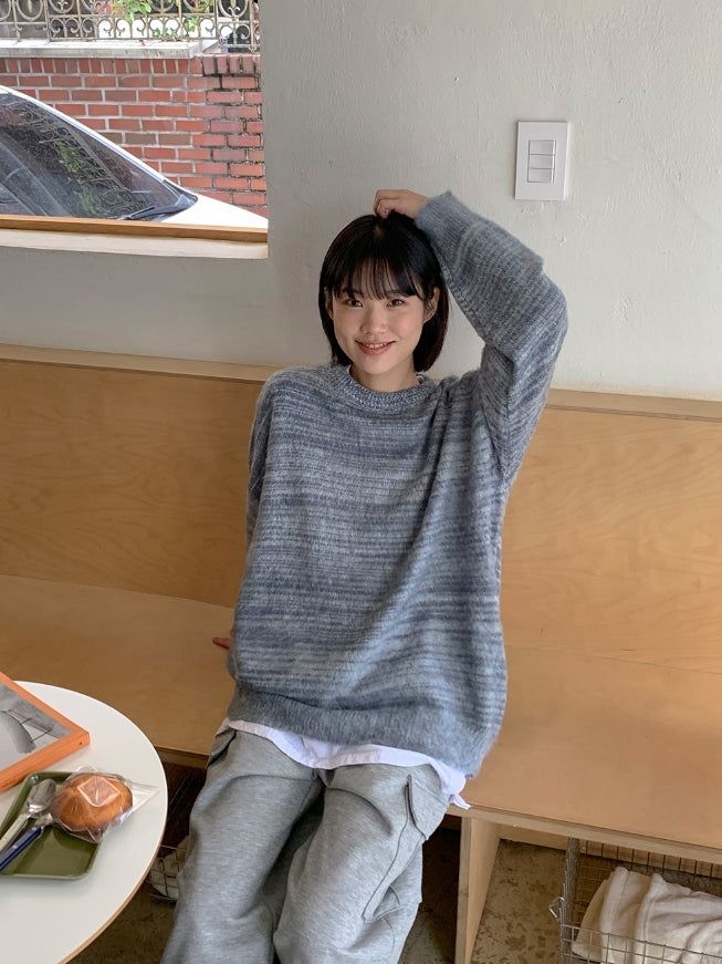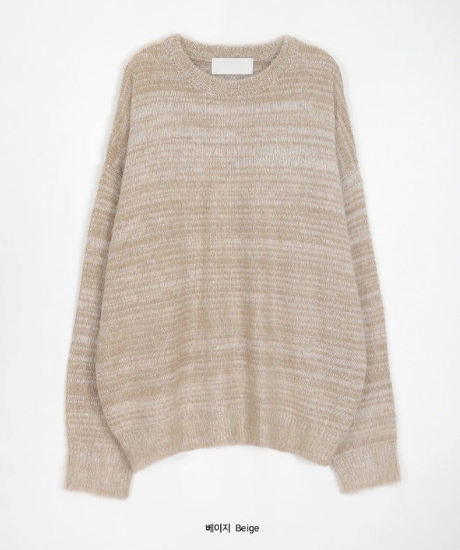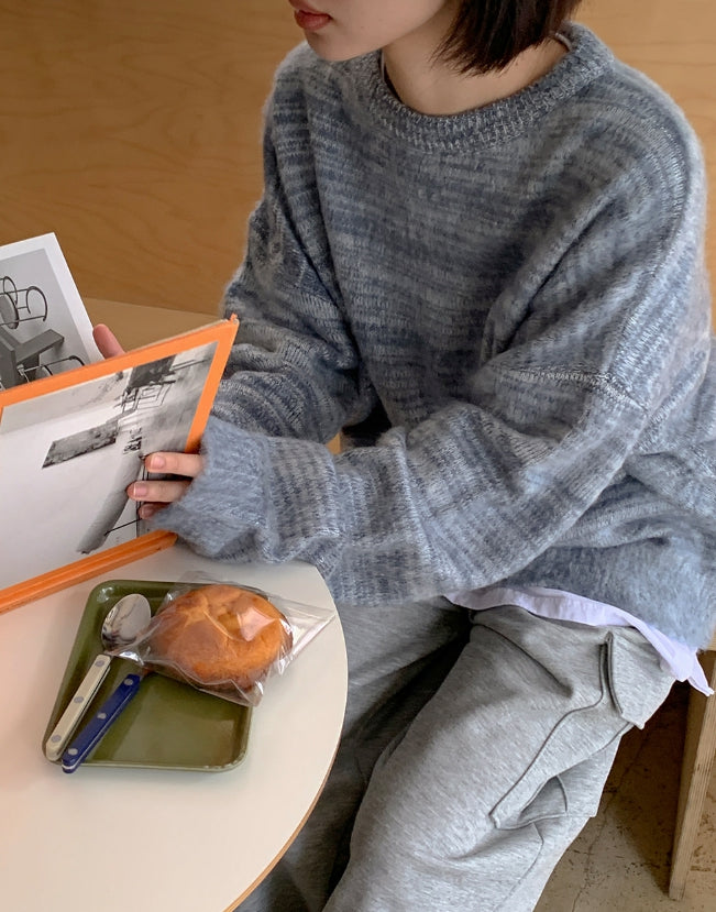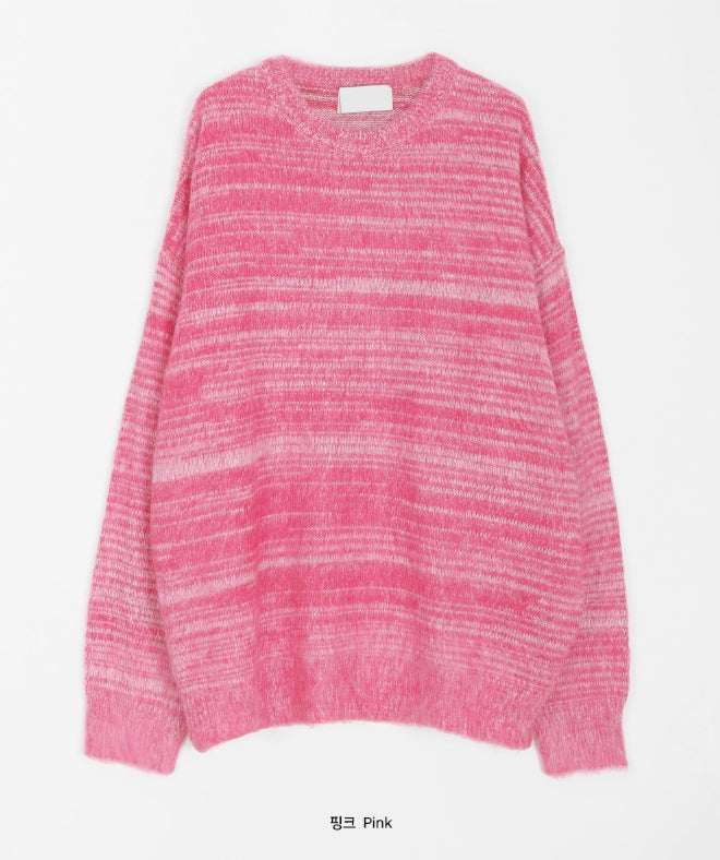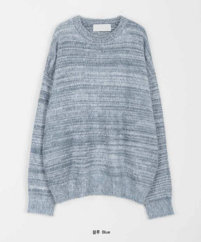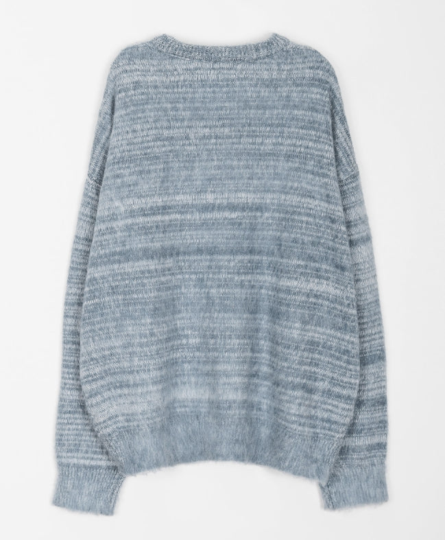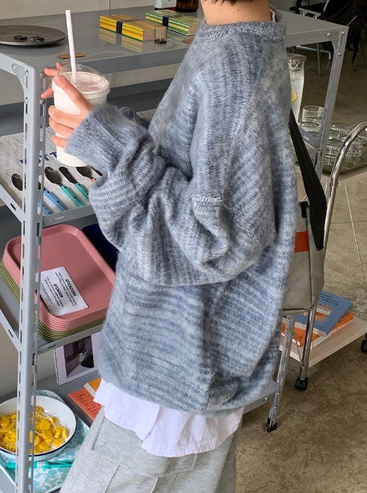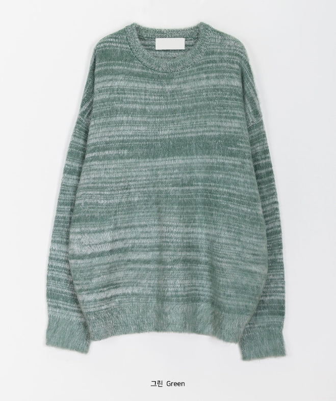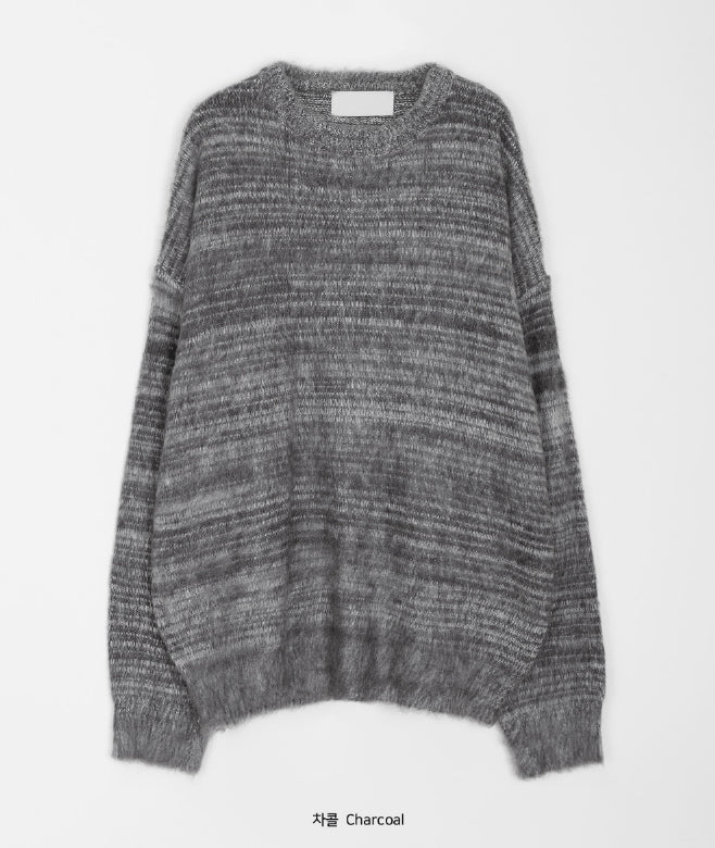 [男女兼用]ディミンスヘアリーストライプオーバーニット