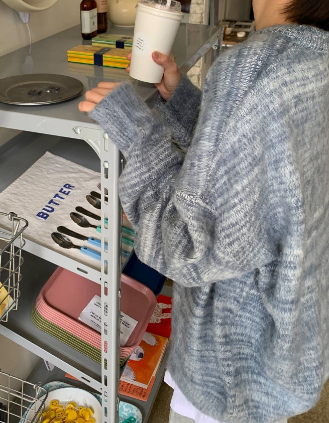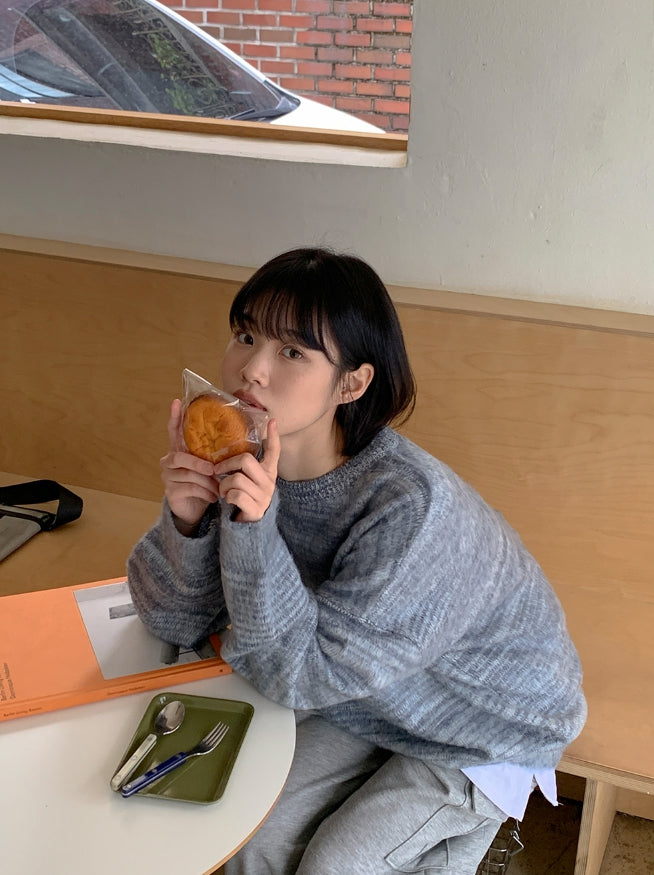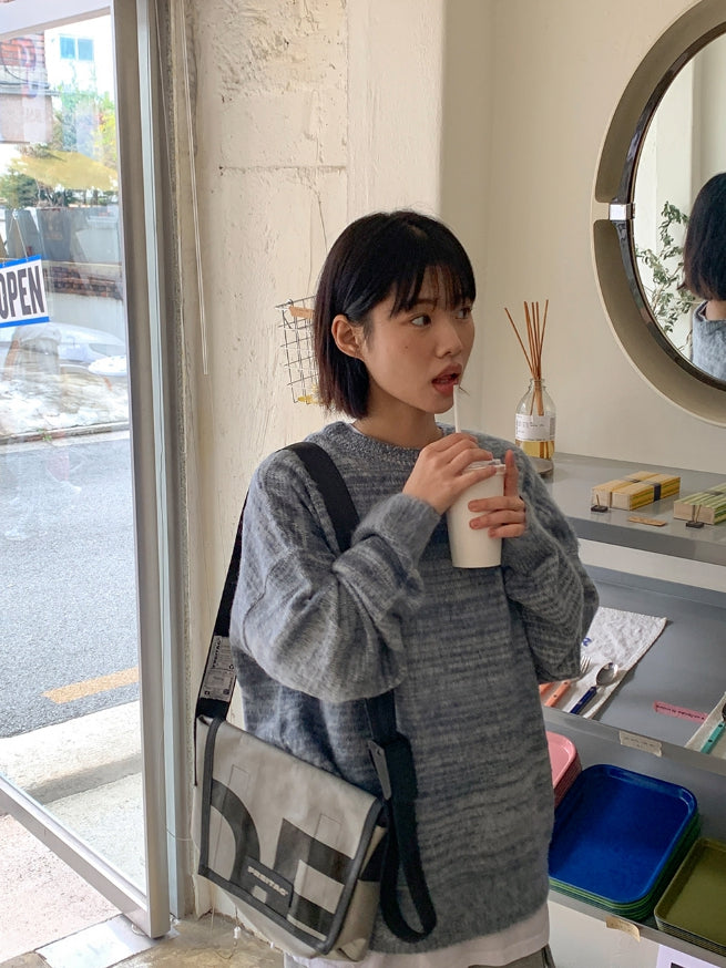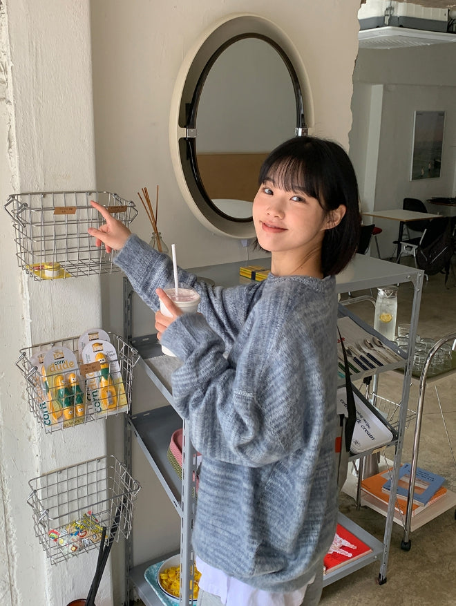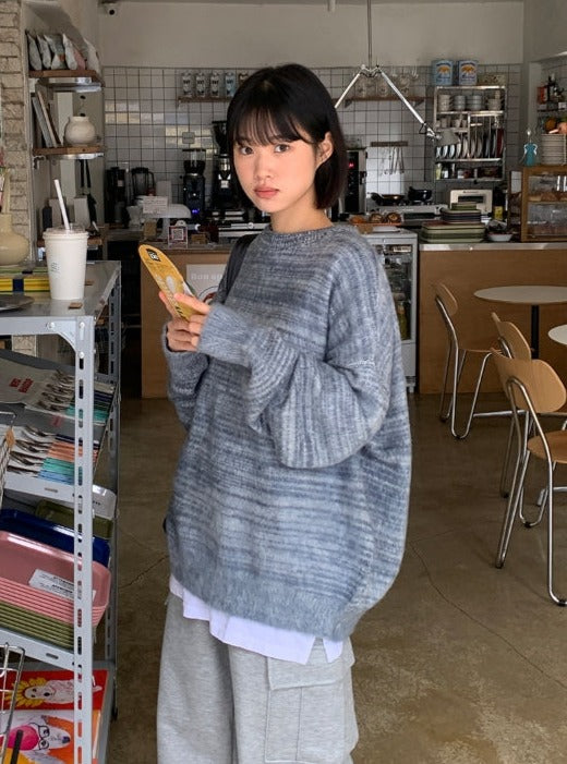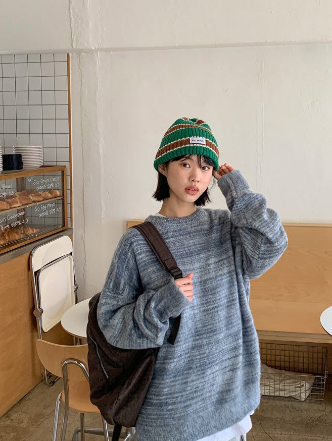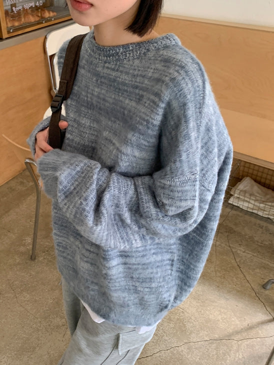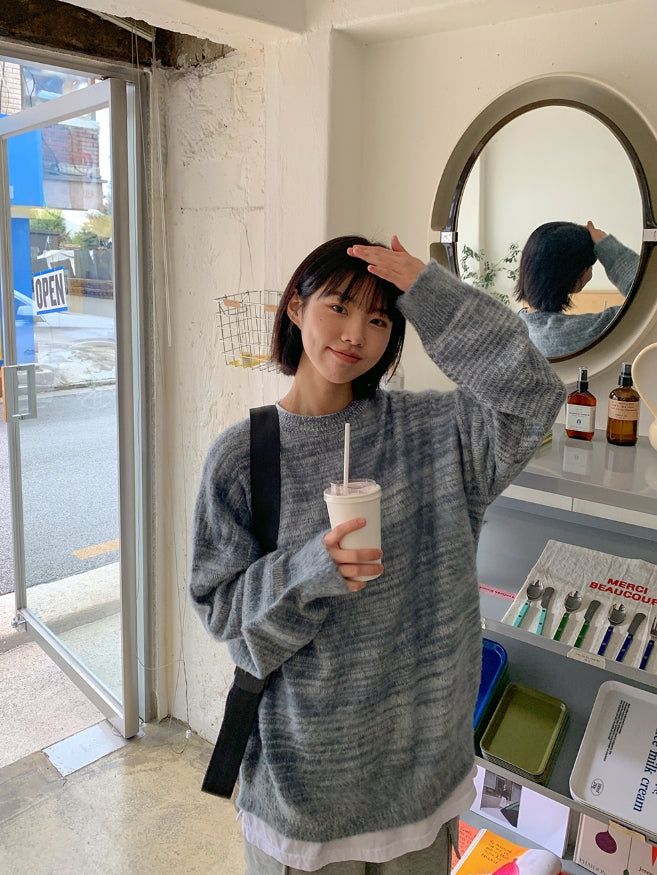 [男女兼用]ディミンスヘアリーストライプオーバーニット