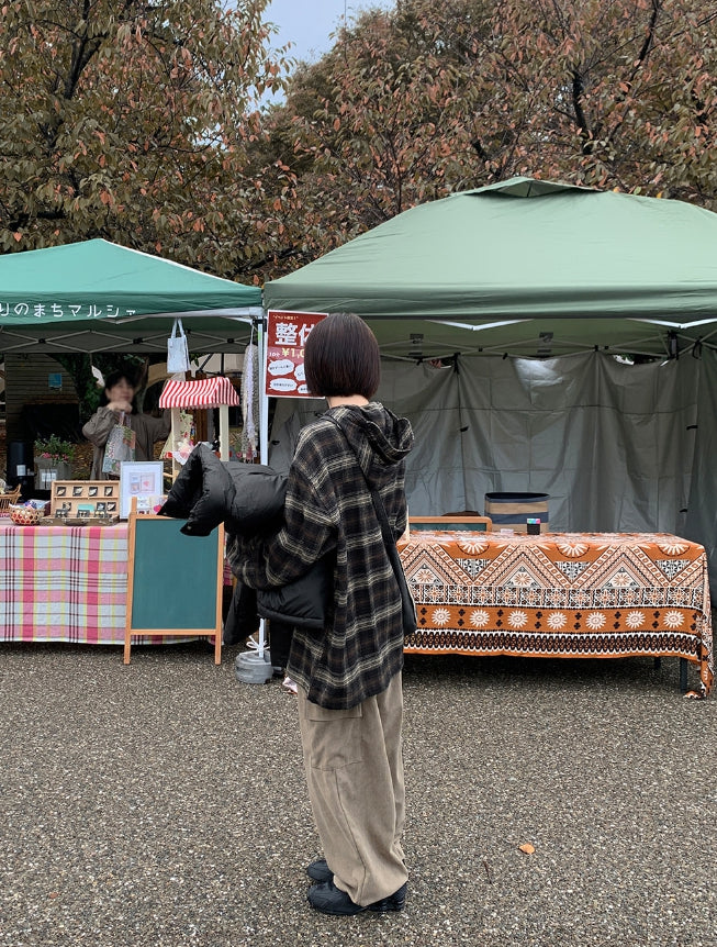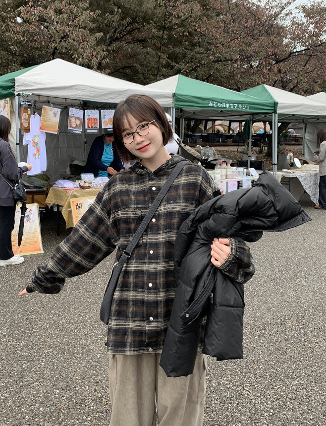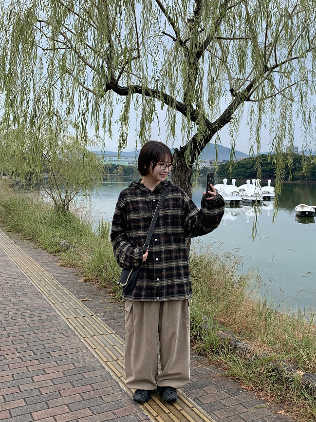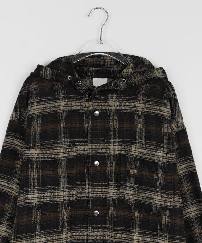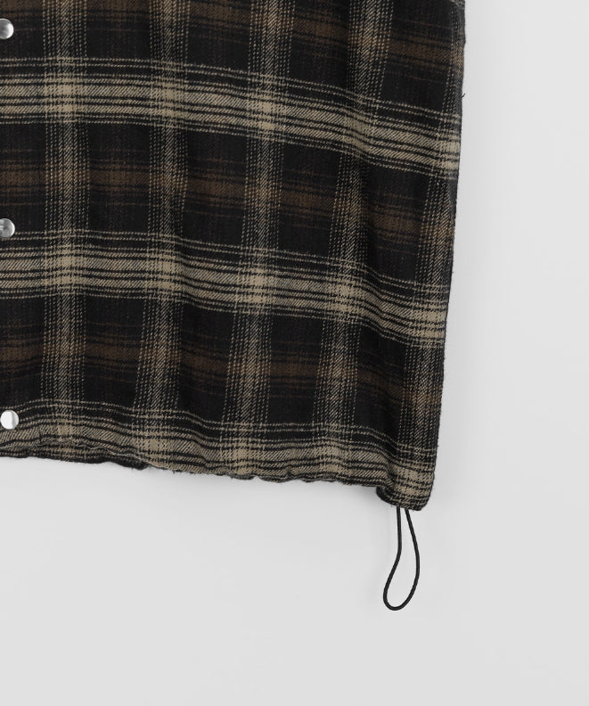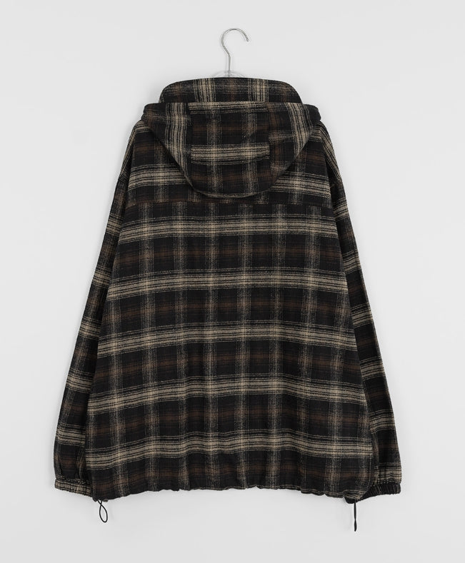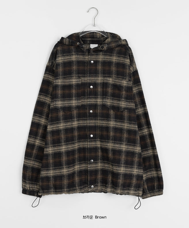[男女兼用]ドコエチェックストリングオーバーフードシャツ