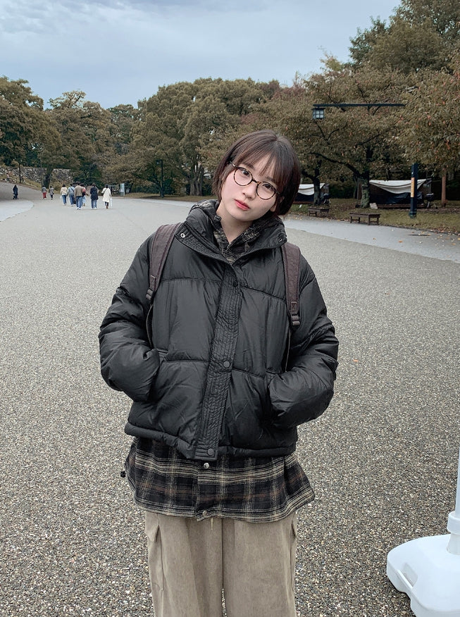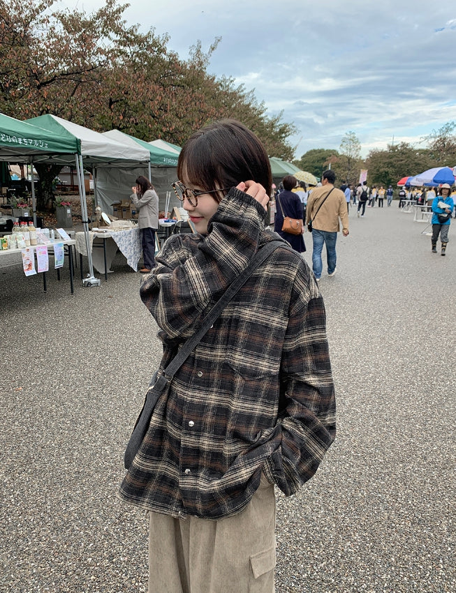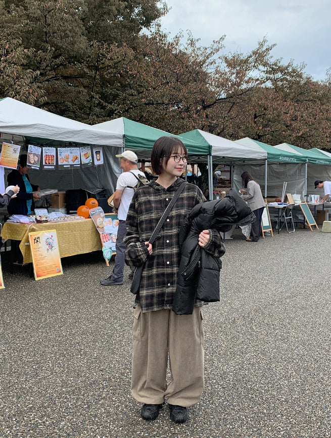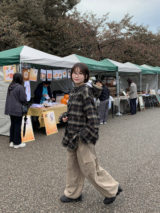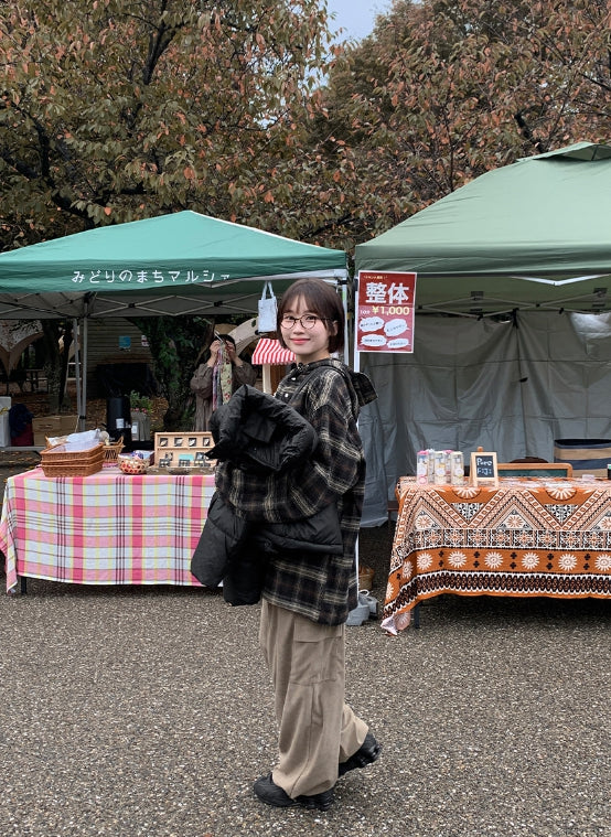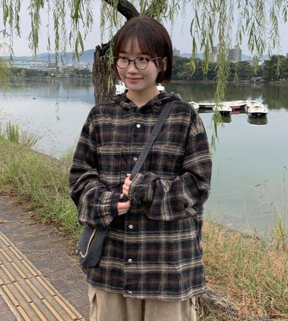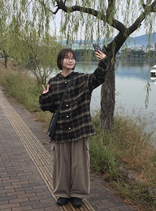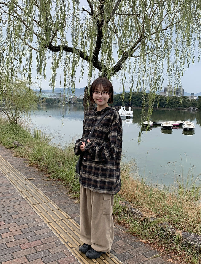 [男女兼用]ドコエチェックストリングオーバーフードシャツ