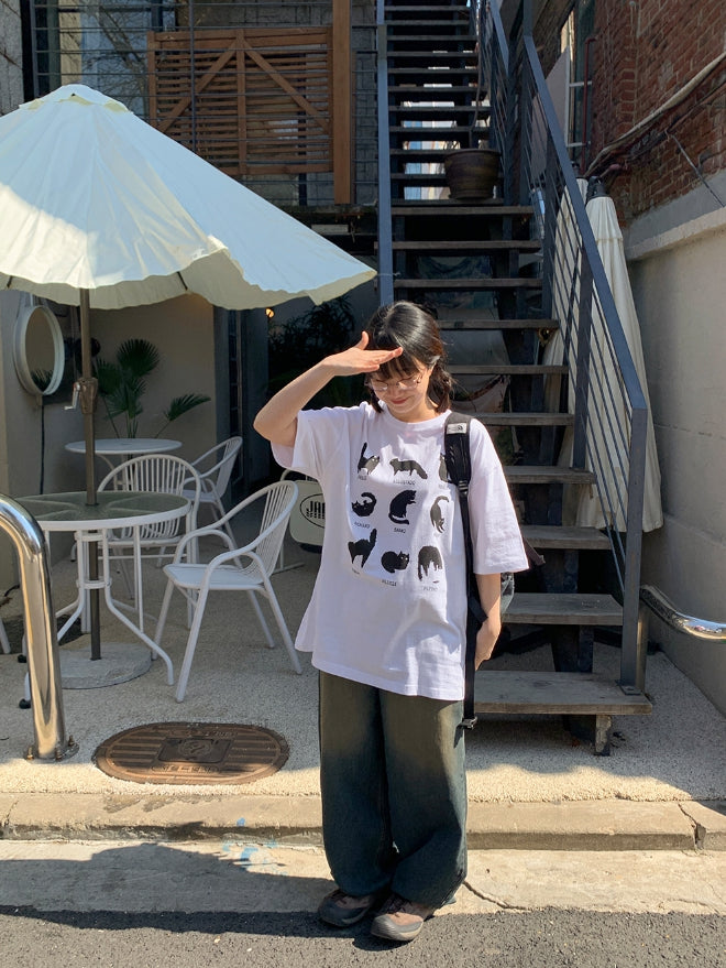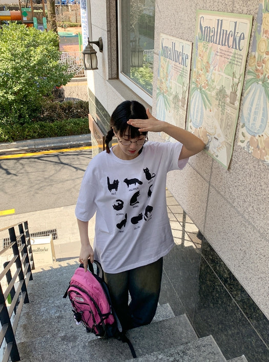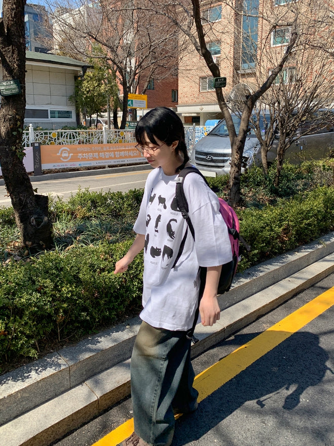 [unisex] Donay Cat Printing Over Short Sleeve Tee