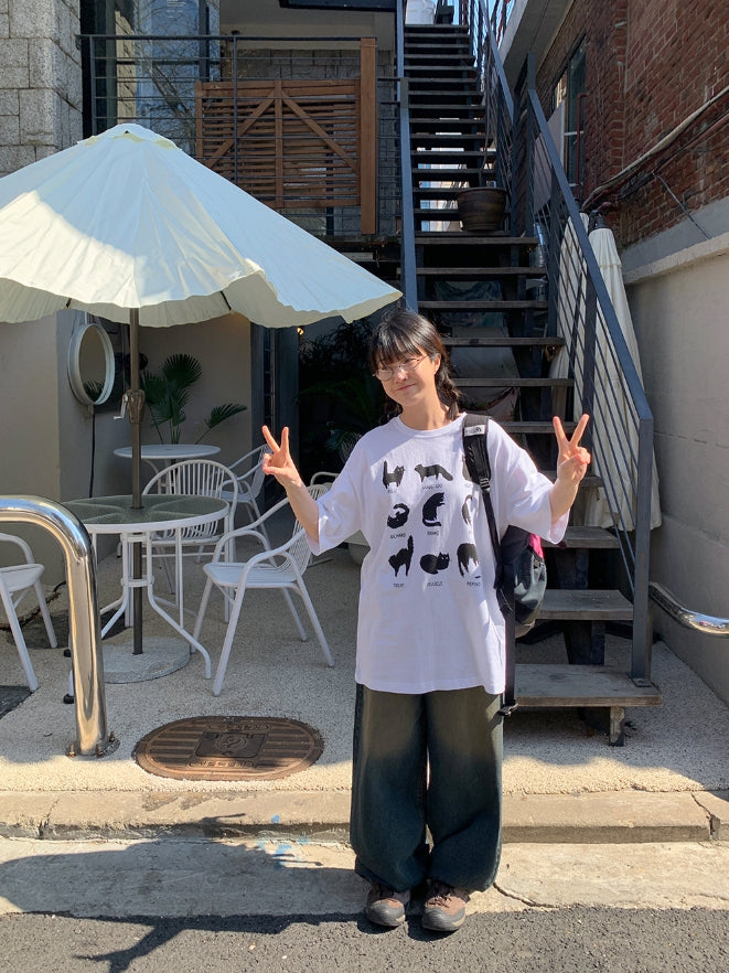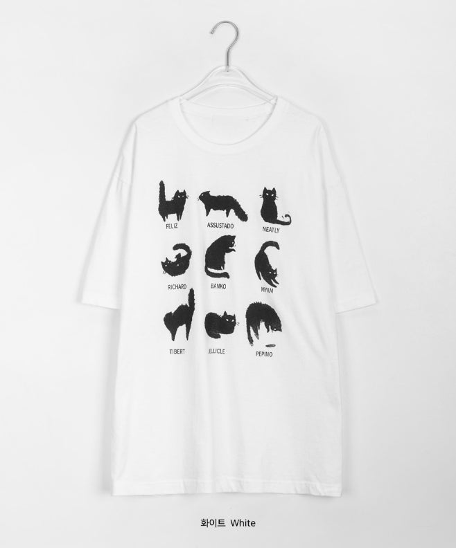 [男女兼用]ドネイキャットプリントオーバー半袖Tシャツ
