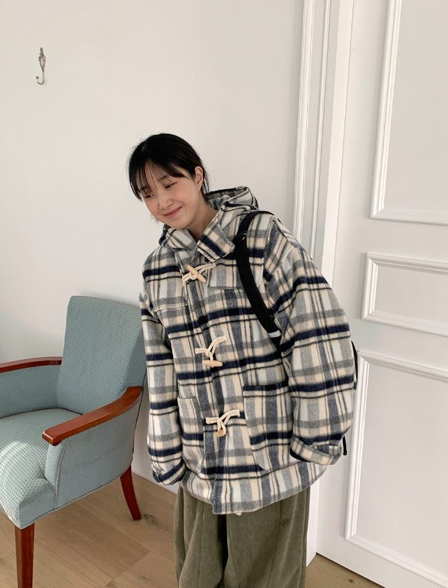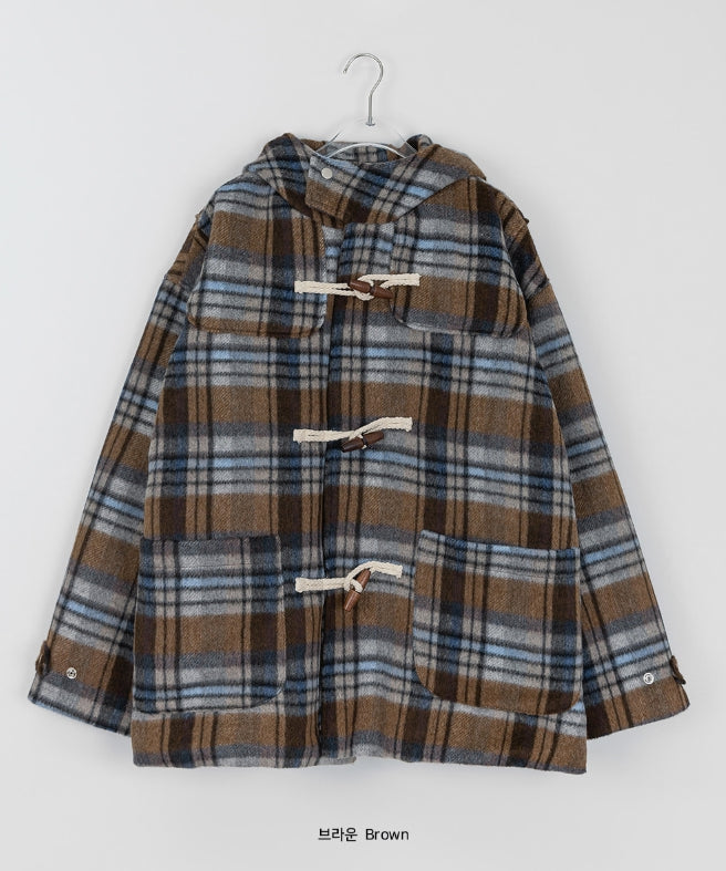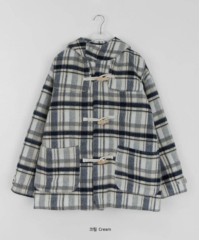 [unisex] Donico Check Duffel Quilted Hood Half Coat