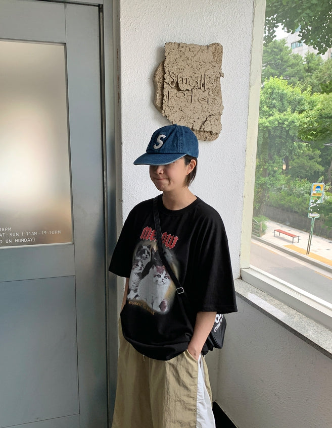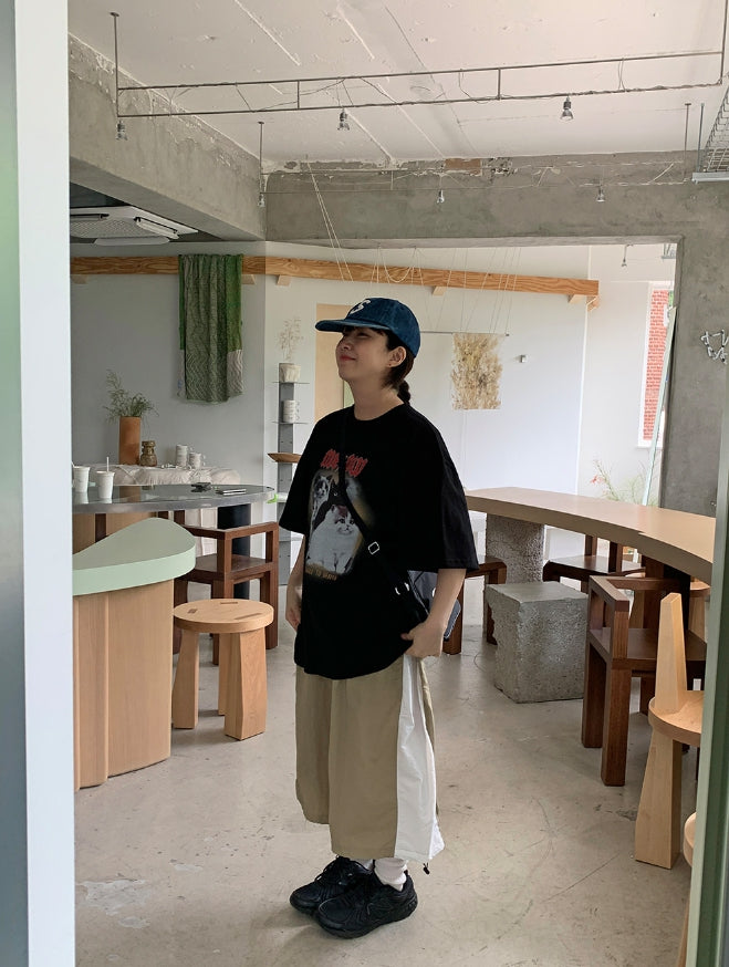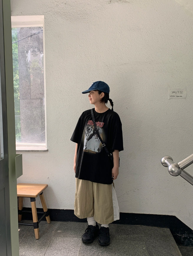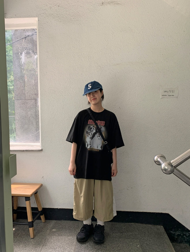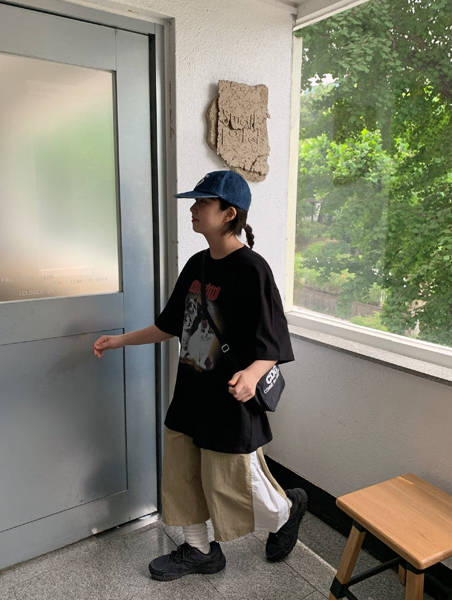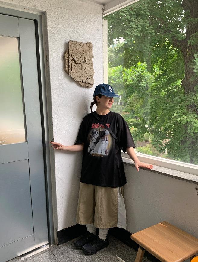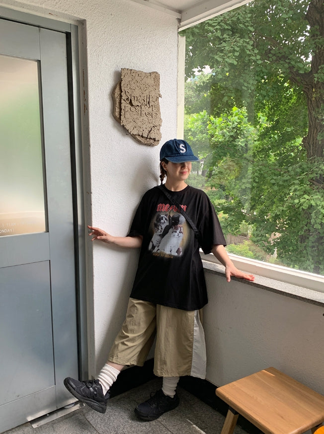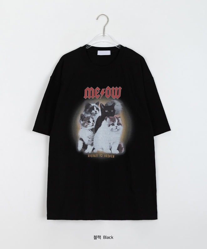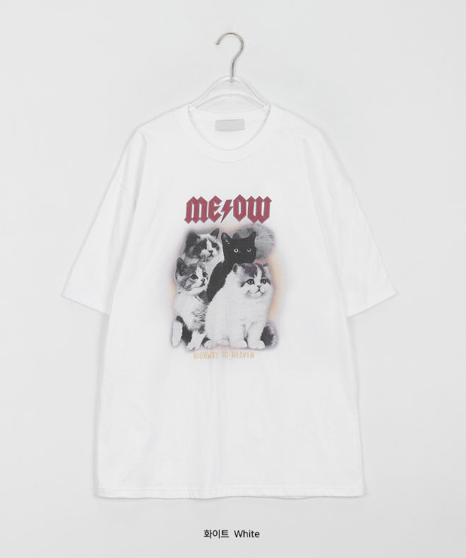 [男女兼用]ドュタロックキャットプリンティングオーバー半袖Tシャツ