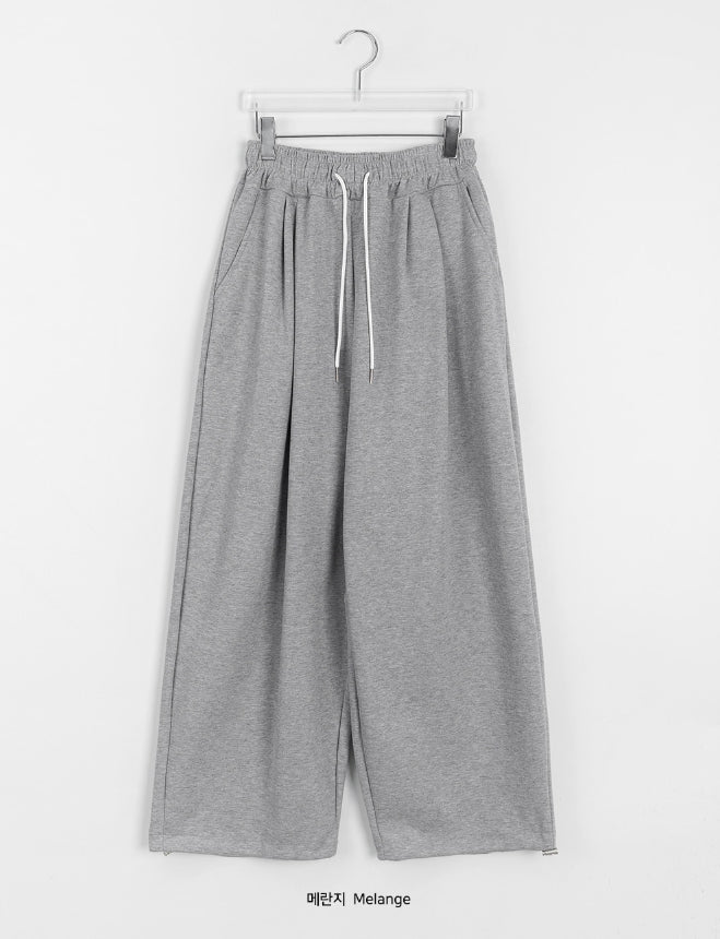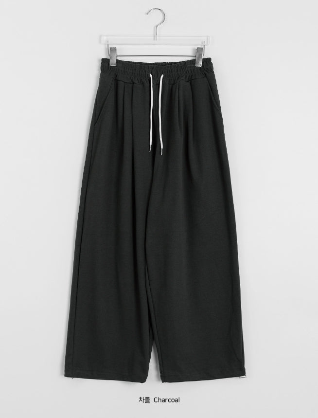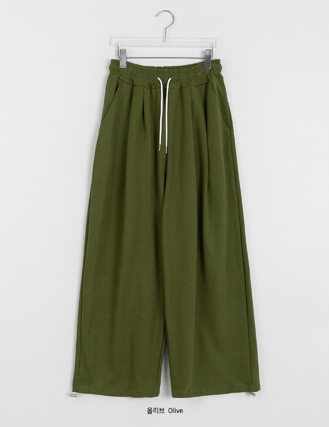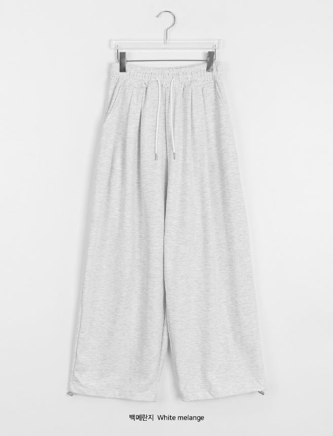 [男女兼用]エンドバンディングストリングピンタックワイドトレーニングパンツ