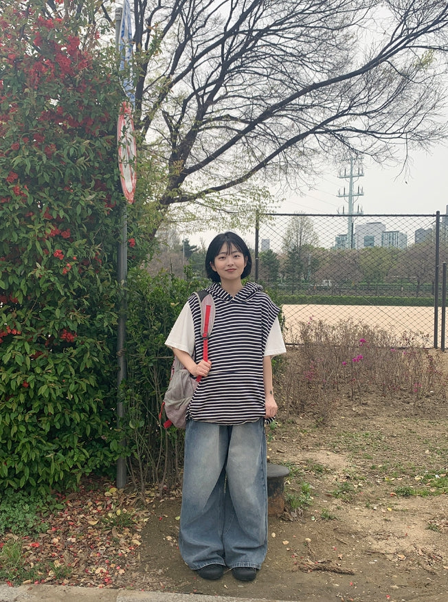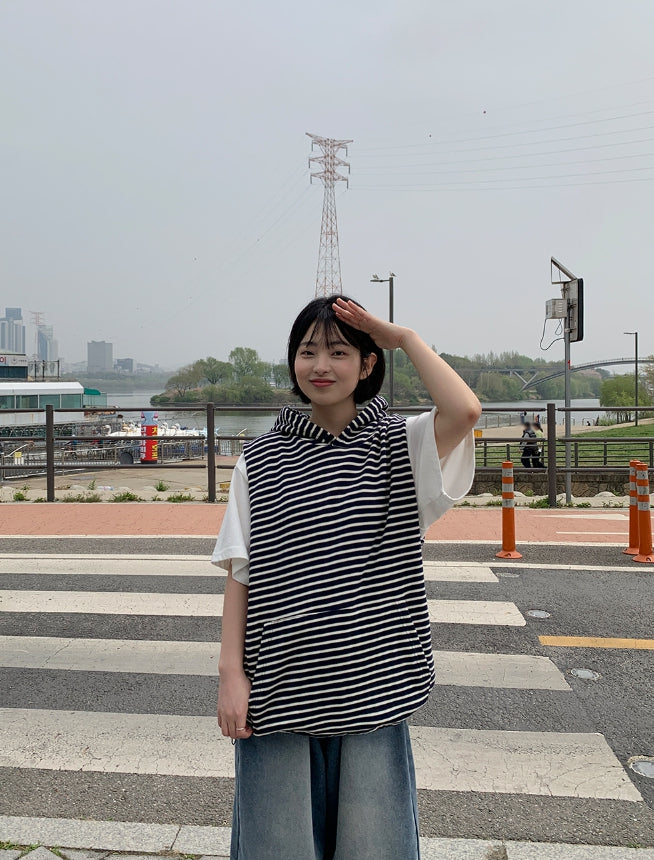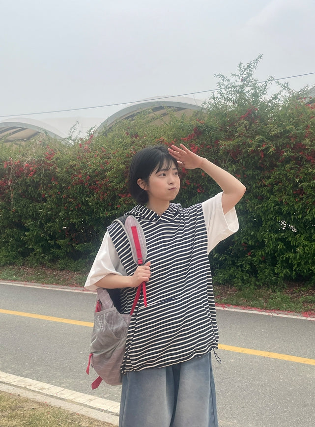 [男女兼用]フォーレムボーダーオーバーフードベスト