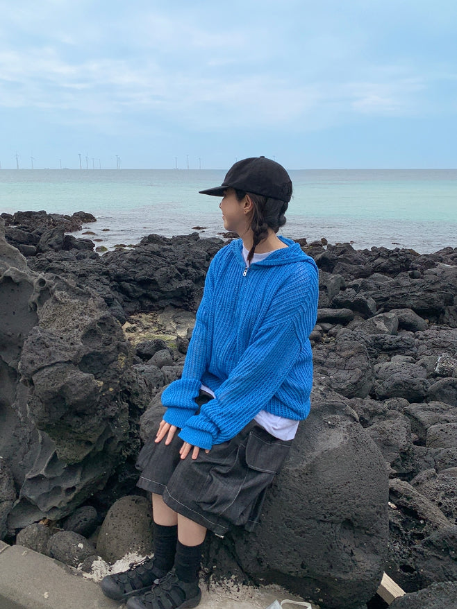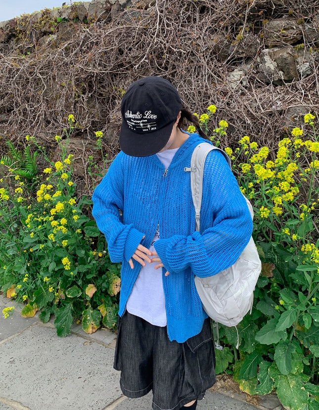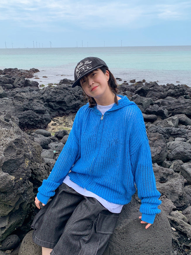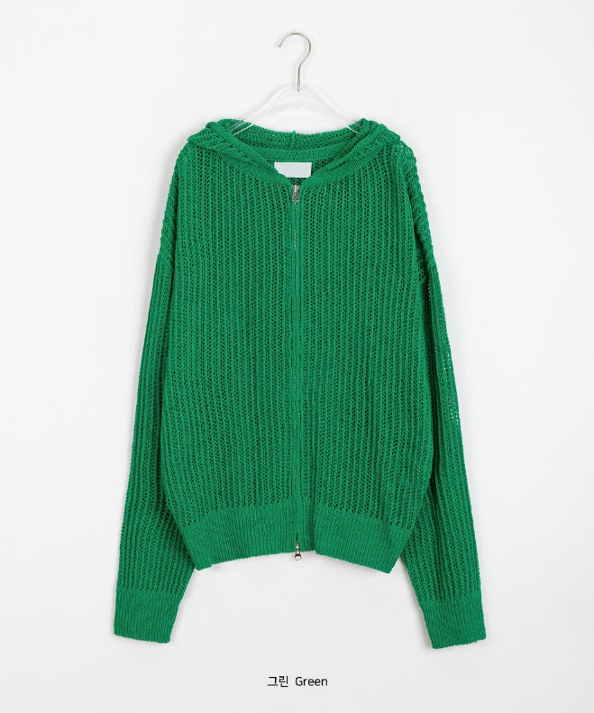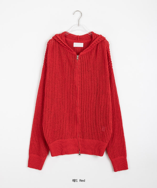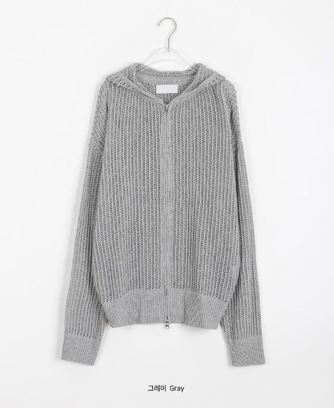[unisex] Hazen Two-Way Net Hooded Knit Zip-Up