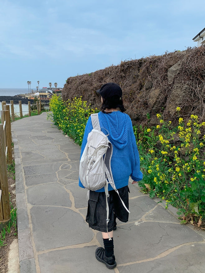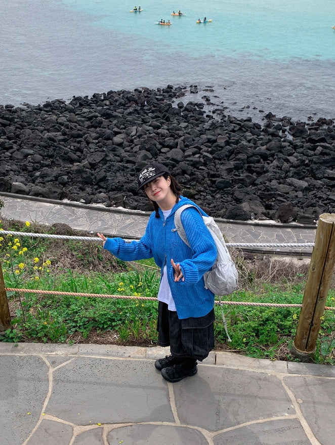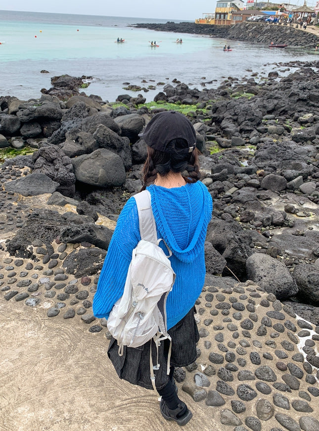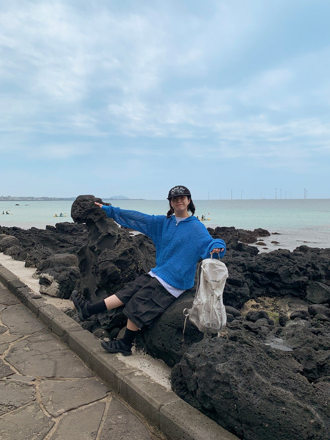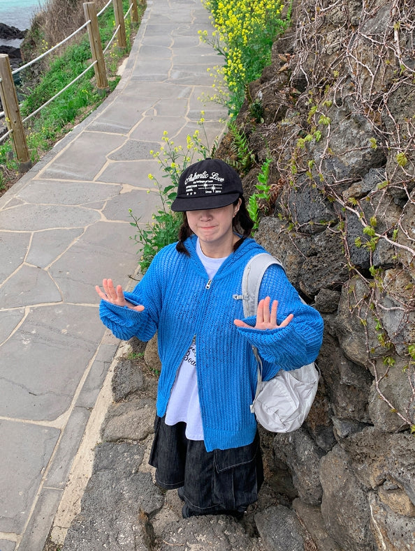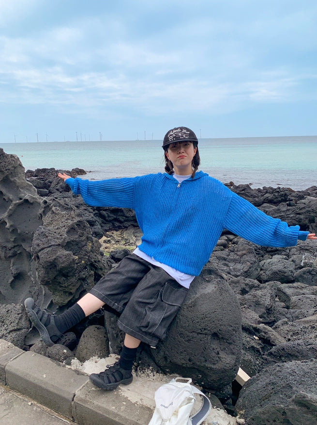 [unisex] Hazen Two-Way Net Hooded Knit Zip-Up