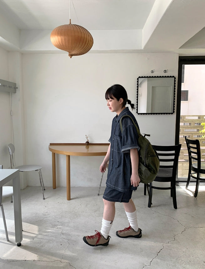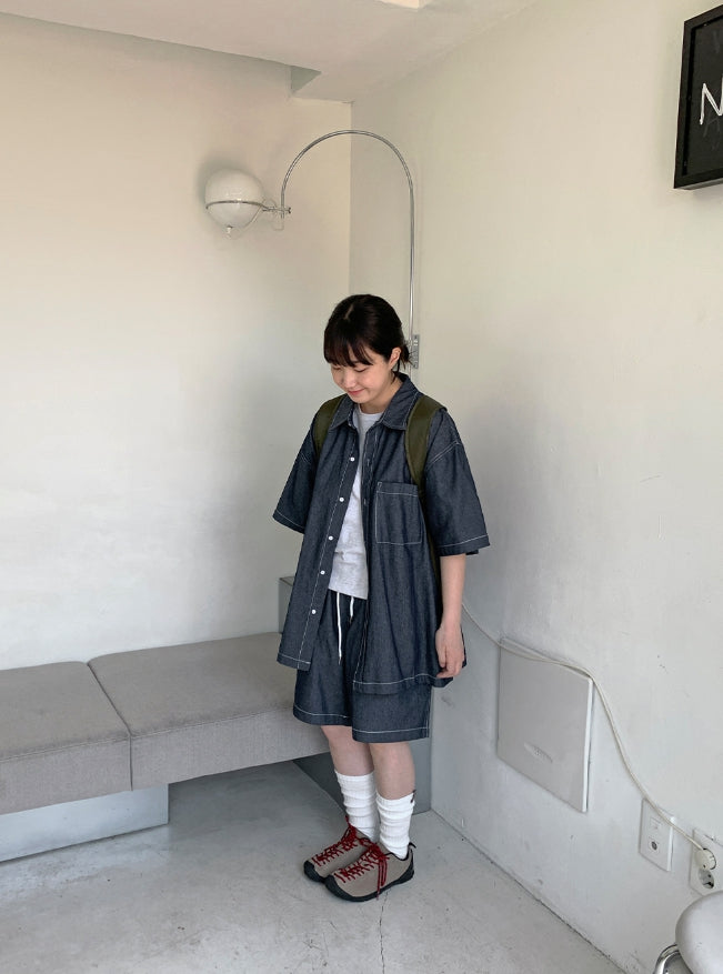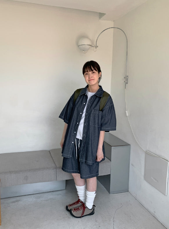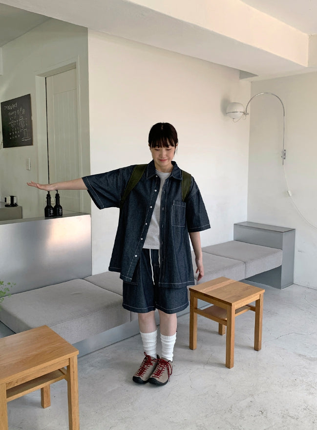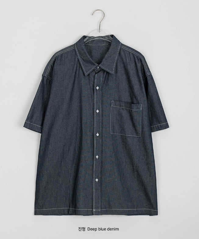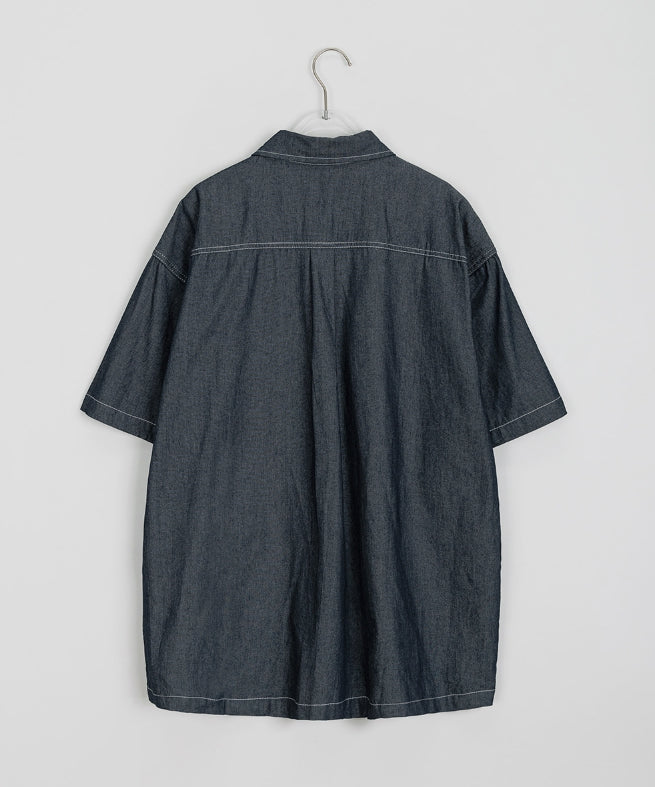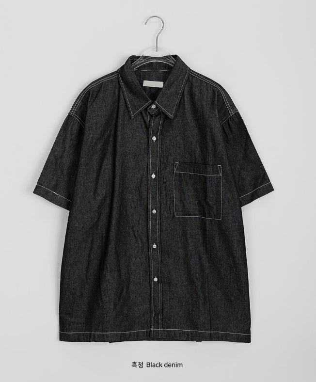 [unisex] Heiko Stitch Pocket Denim Over Short Sleeve Shirt