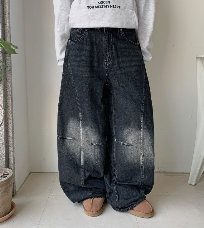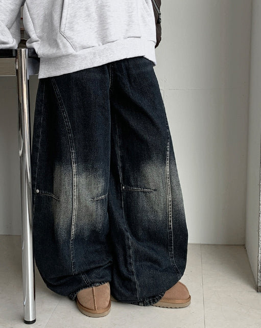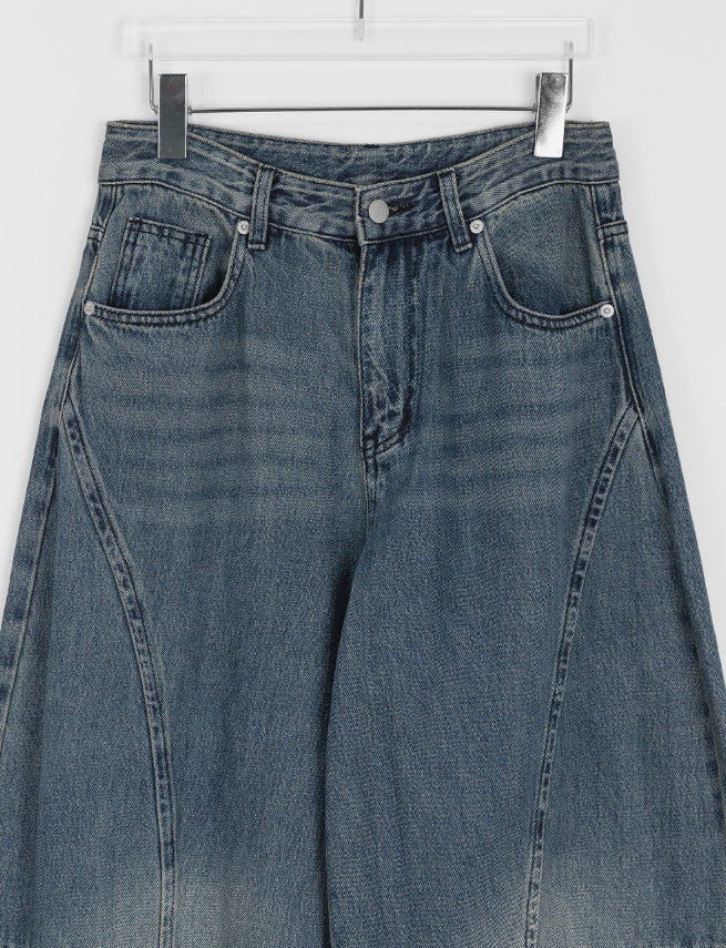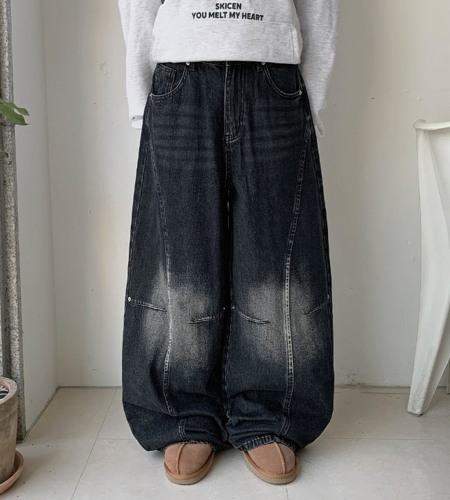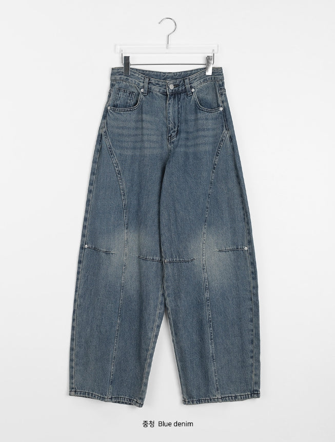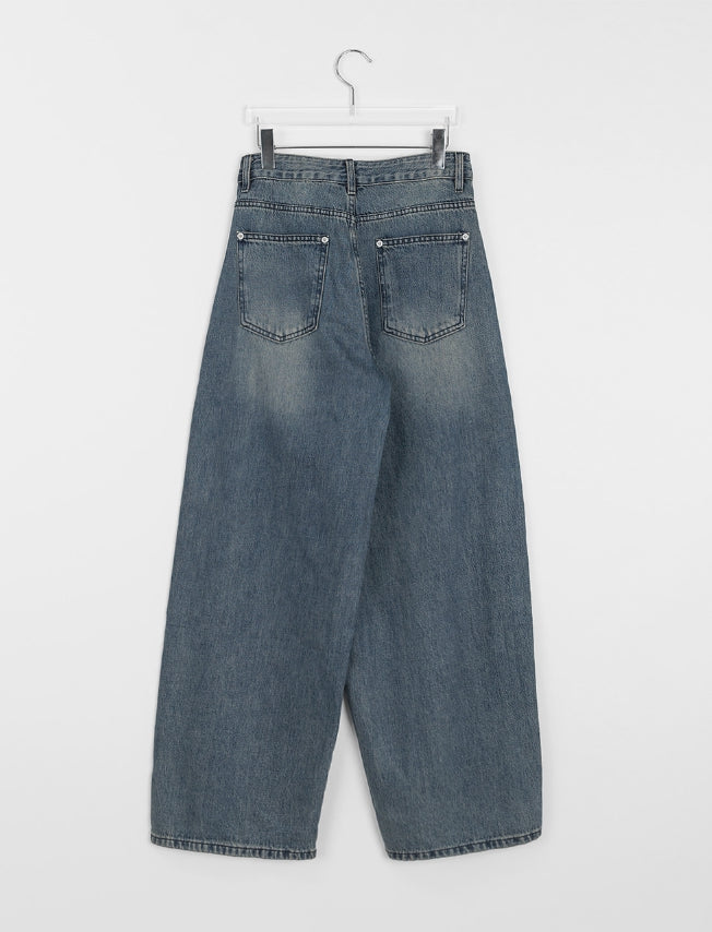 [unisex] Kaif Rivet Cut Washing Wide Denim Pants