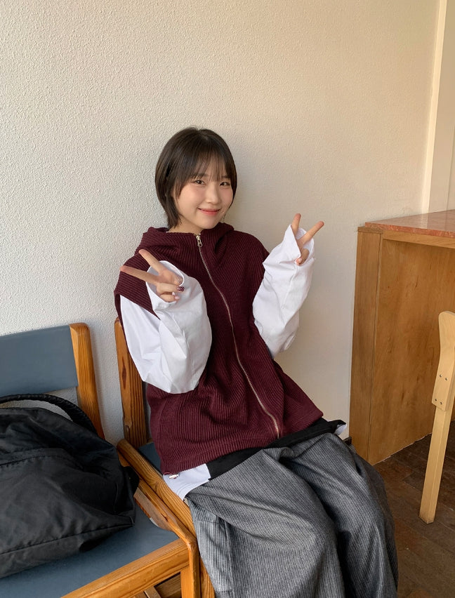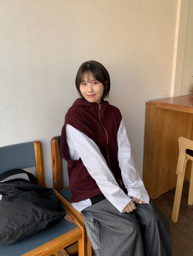 [unisex] Kuomi Over String Hood Knit Vest