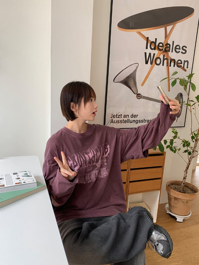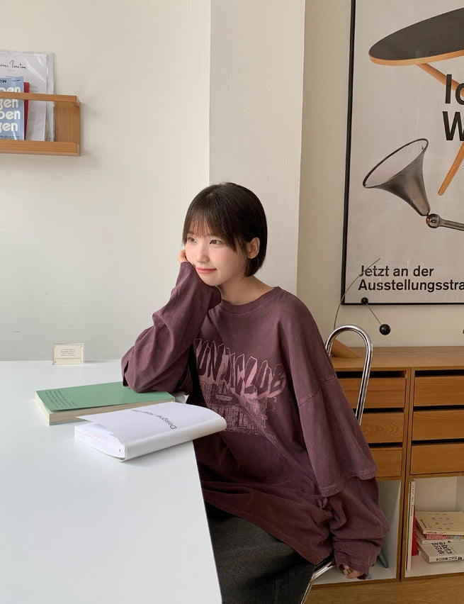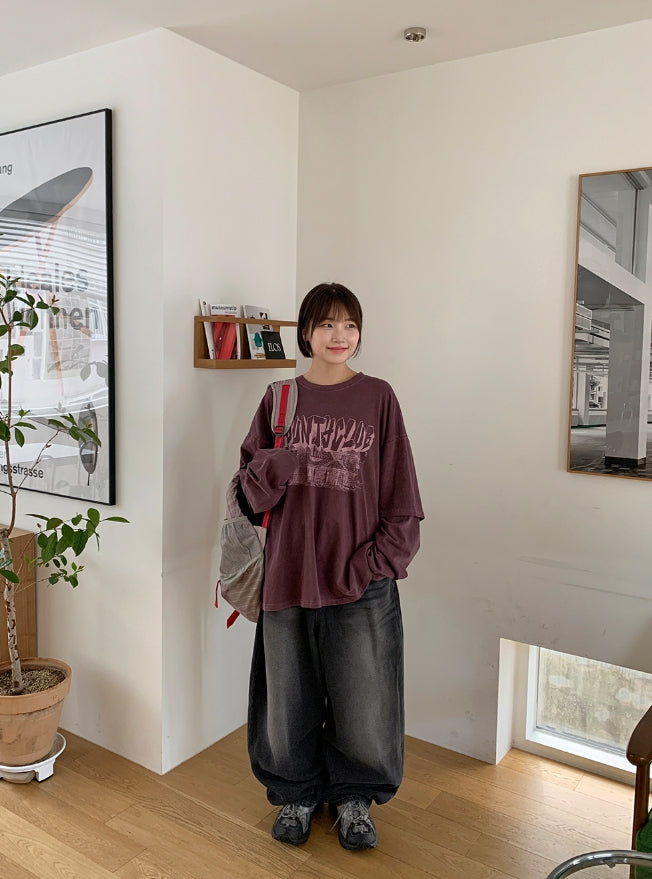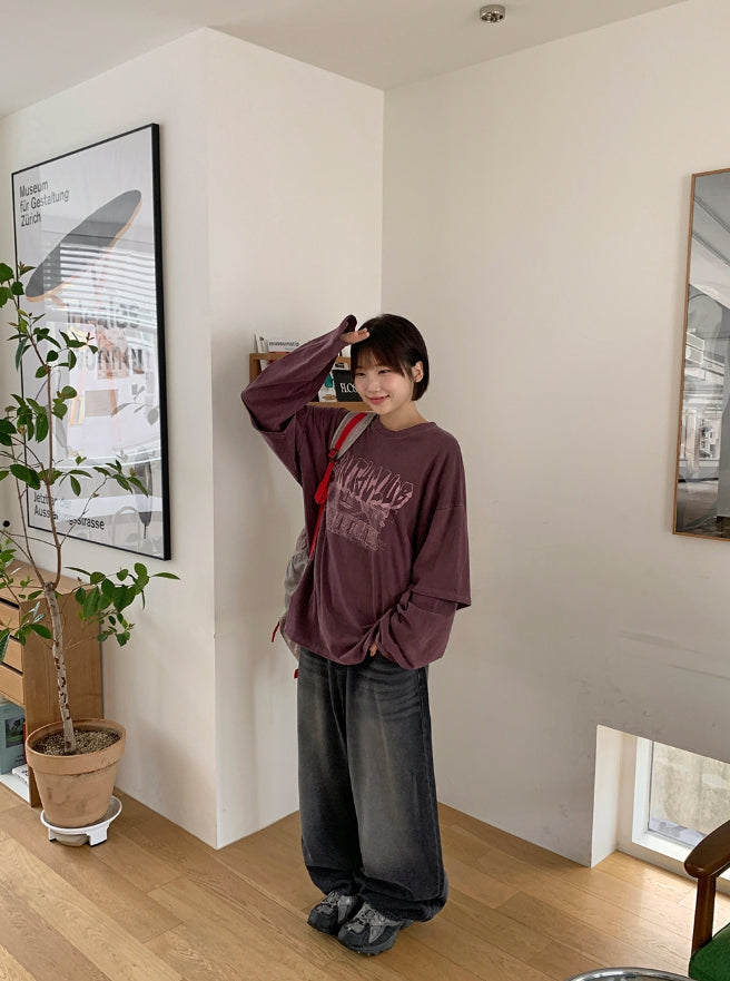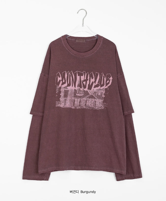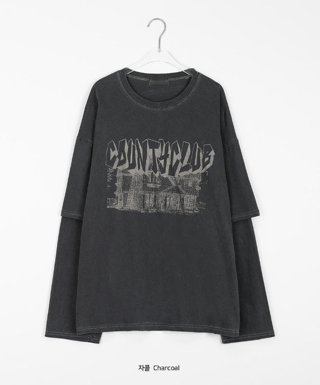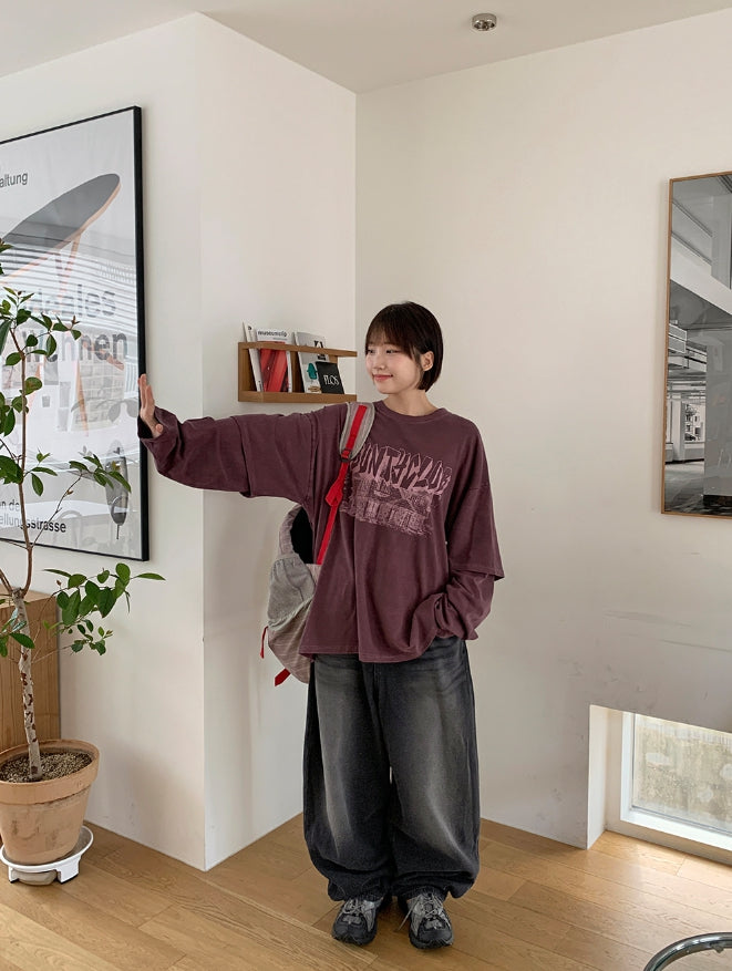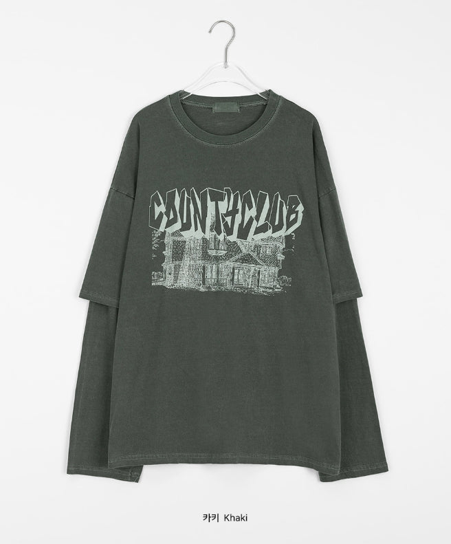 [男女兼用]レオニプリントレイヤードオーバー長袖Tシャツ