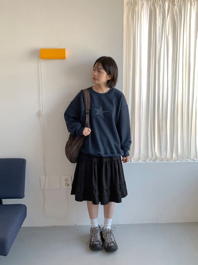 [Unisex] Lil Tough Star Check Round Over Sweatshirt