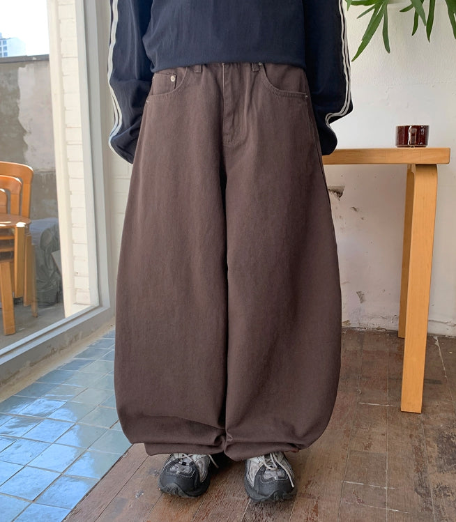 [unisex] Menconi Brown Balloon Wide Cotton Pants