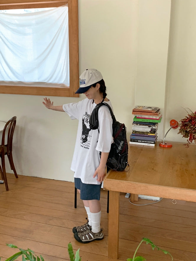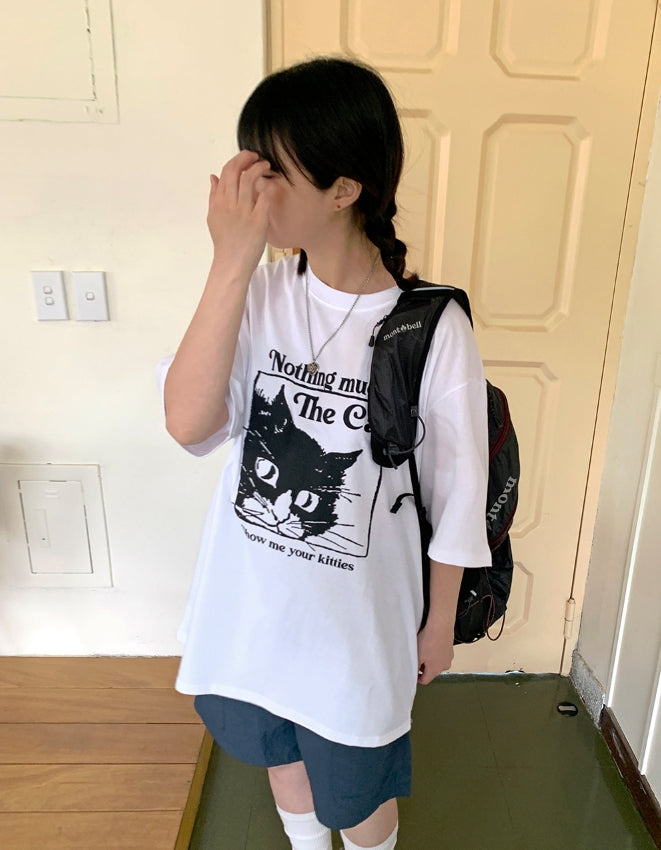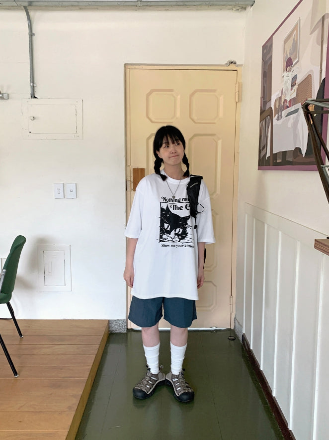 [unisex] Mihu Cat Printing Over Short Sleeve Tee
