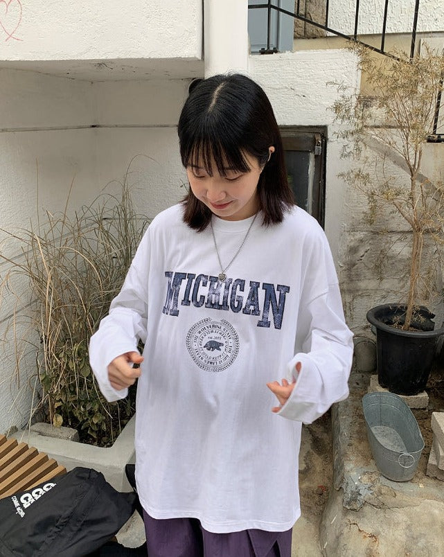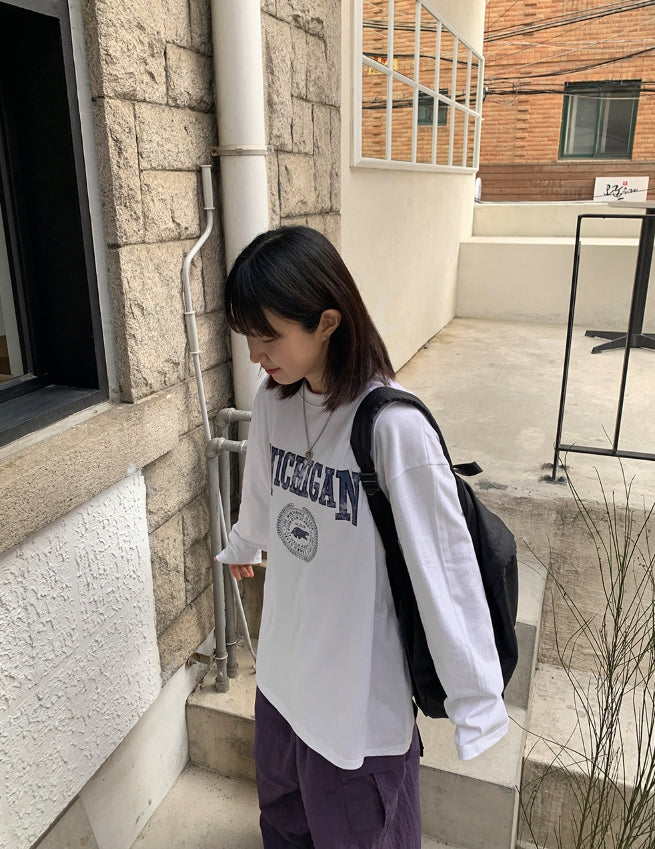 [男女兼用]ミッシープリンティングオーバー長袖Tシャツ