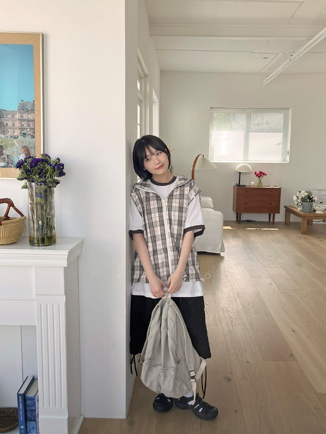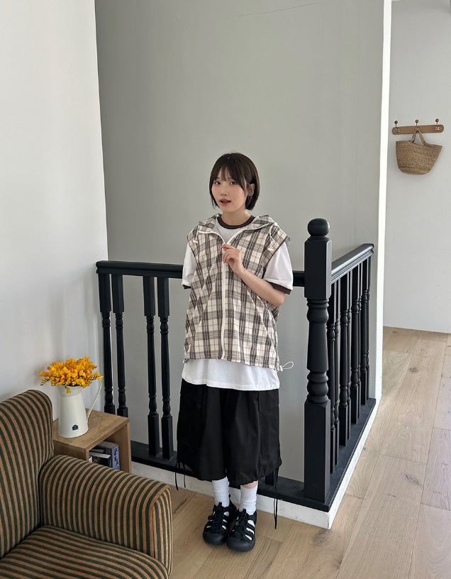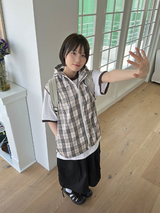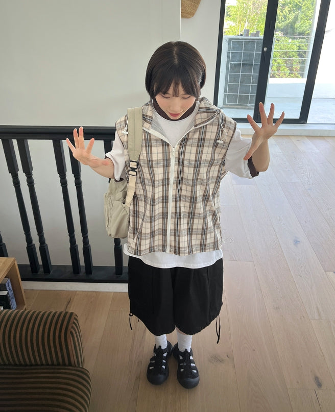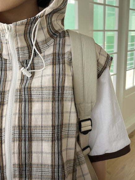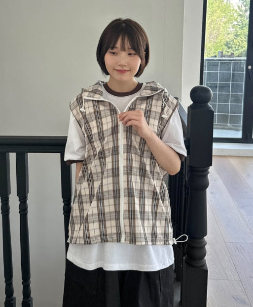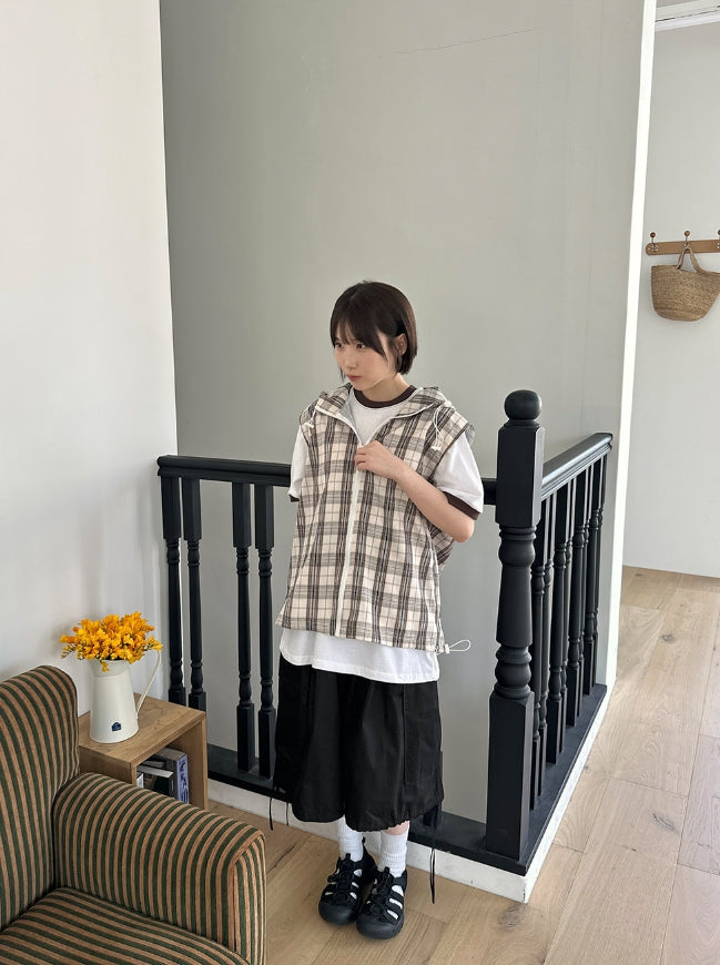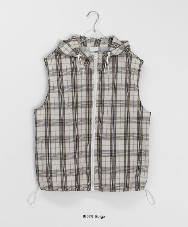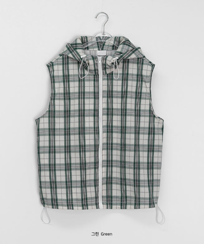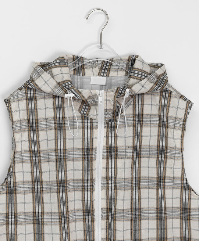 [unisex] Naboli Summer Check Hood Zip-up Vest