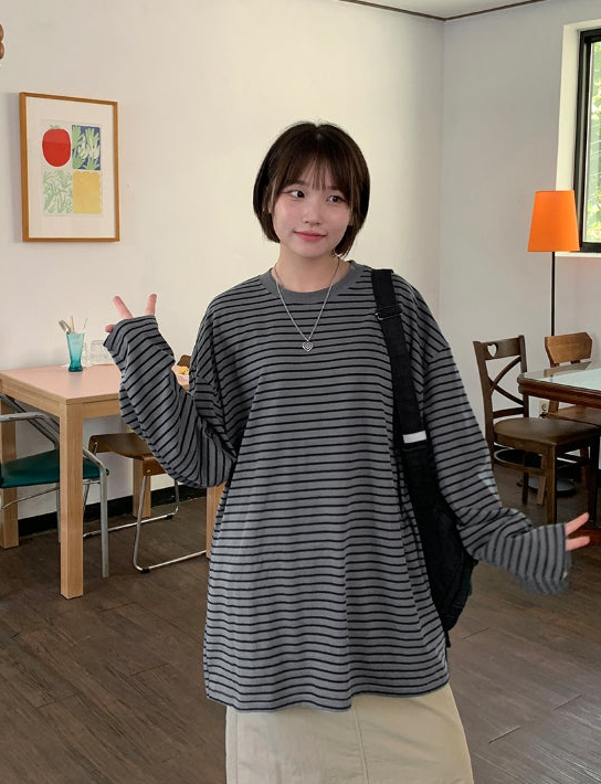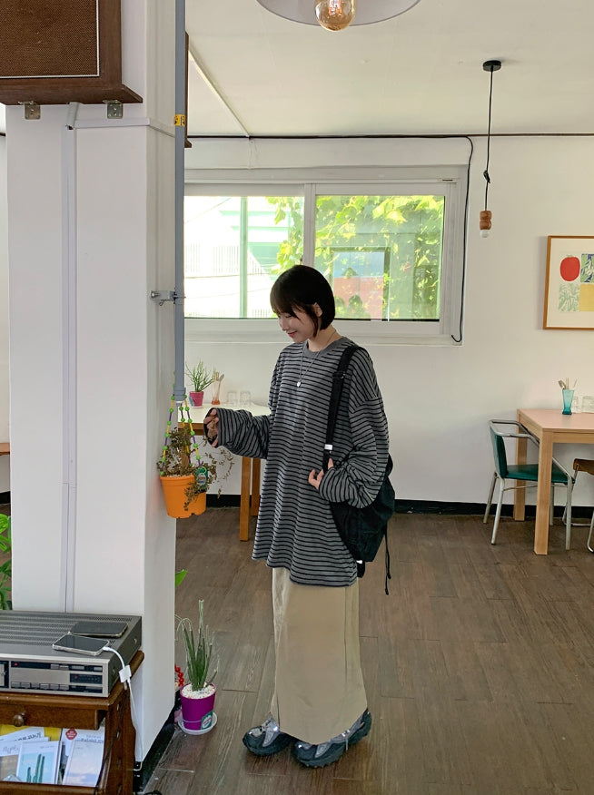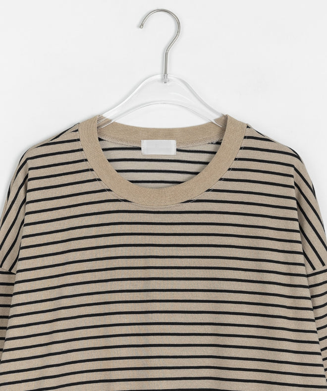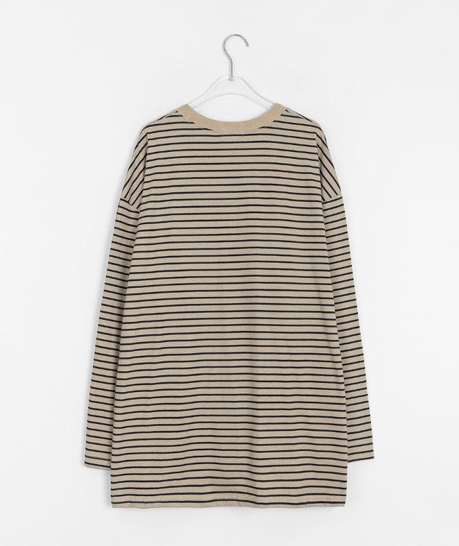 [男女兼用]ネルストライプオーバー長袖Tシャツ