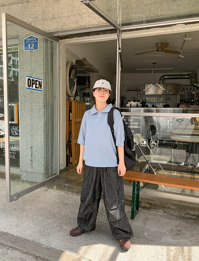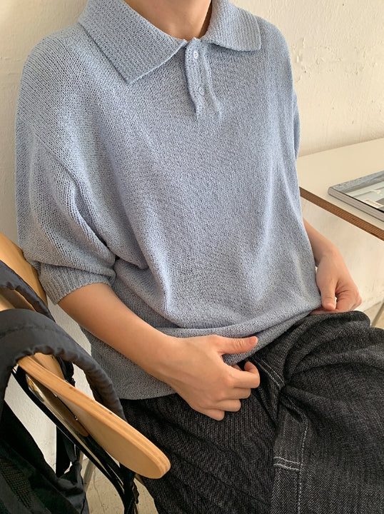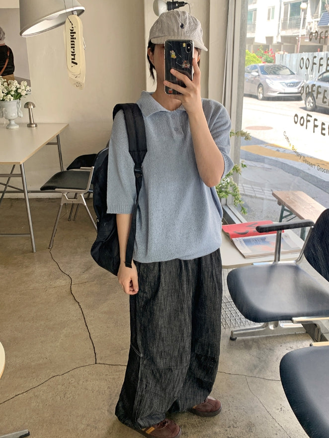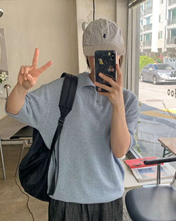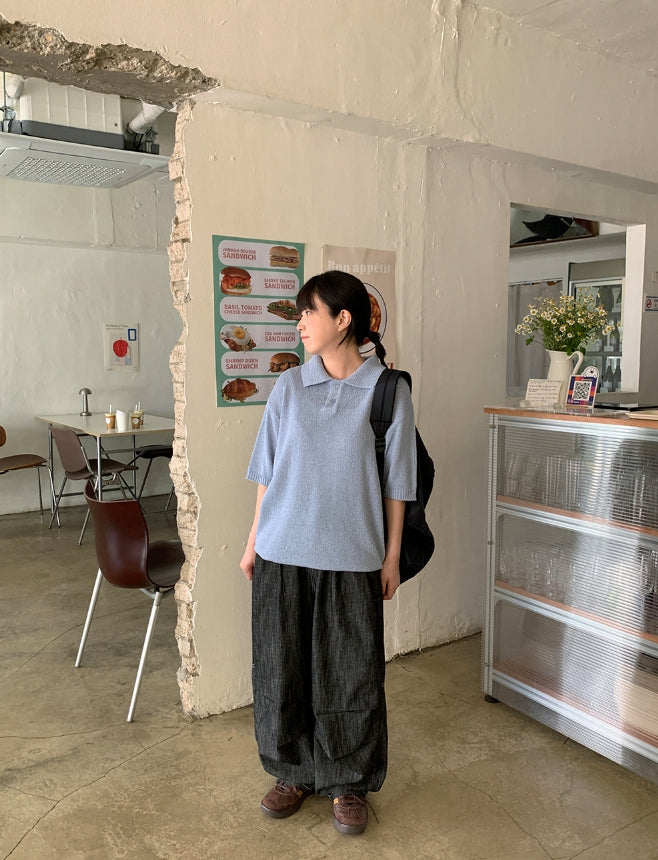 [unisex] Panky Summer Boucle Collar Short Sleeve Knit