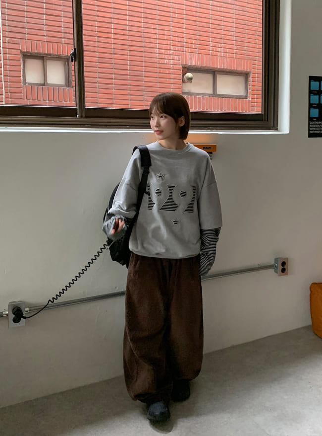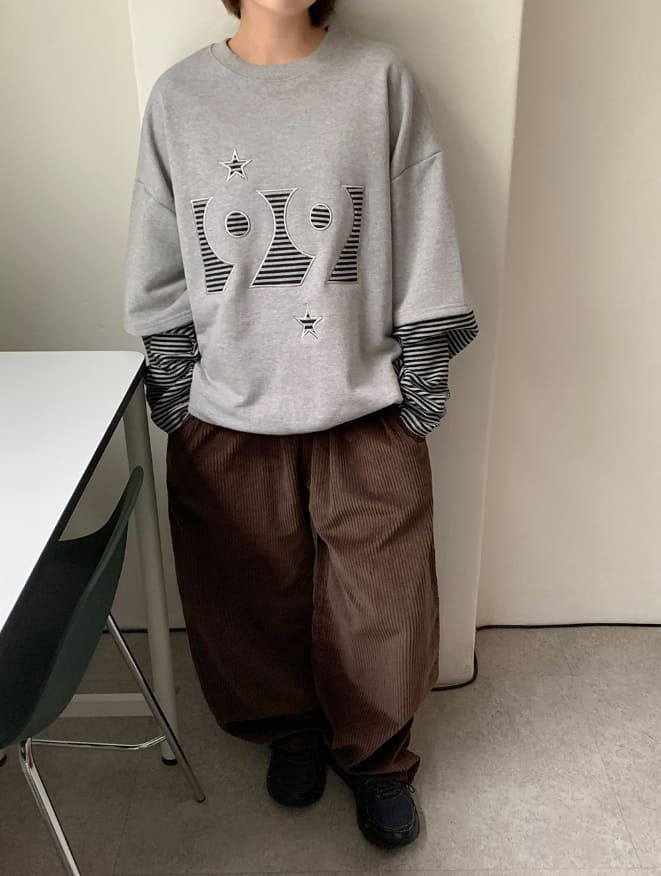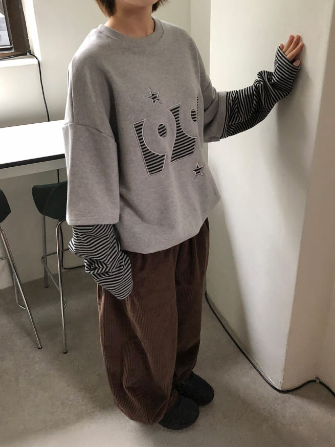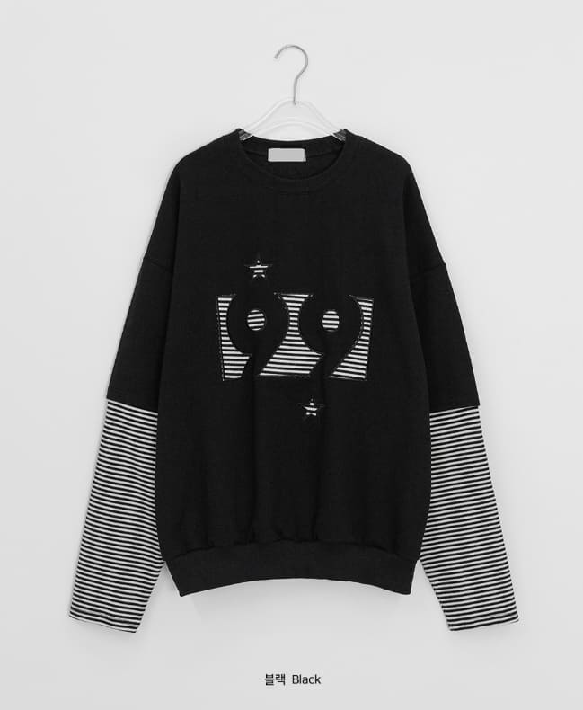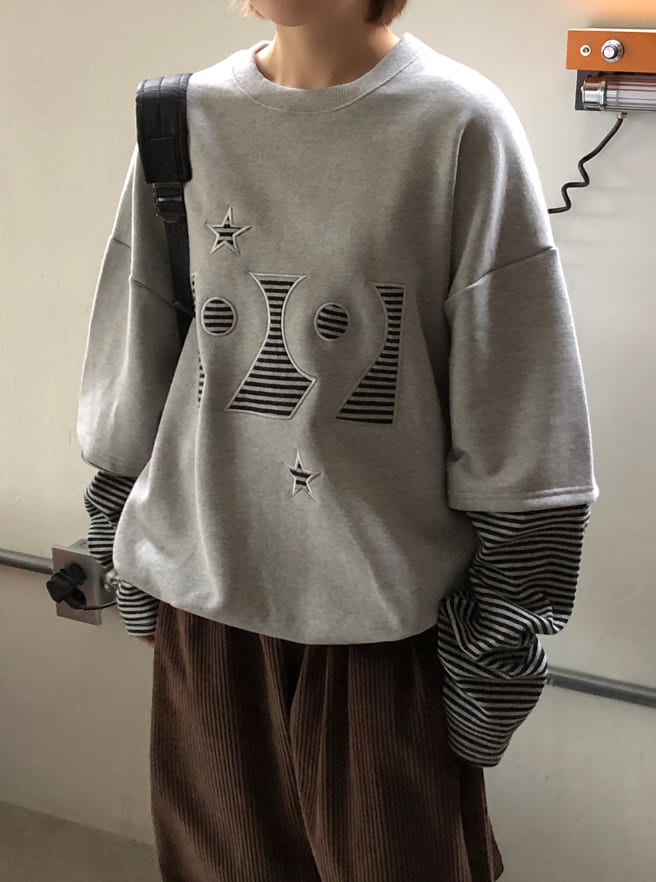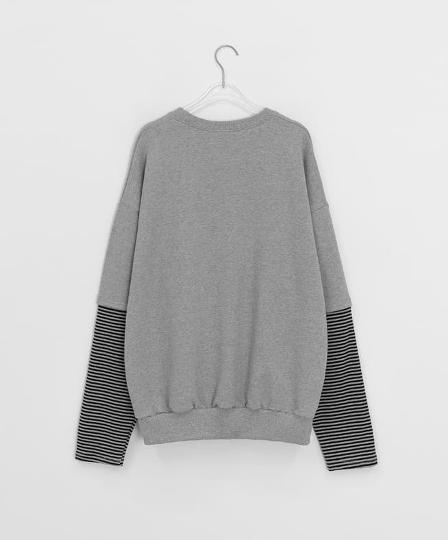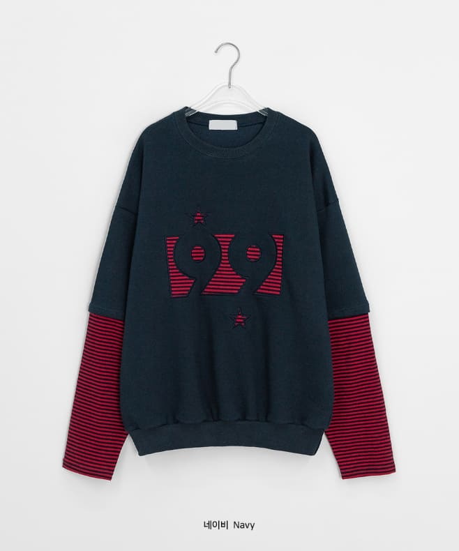 [unisex] Panpio Embroidered Stripe Layered Sweatshirt