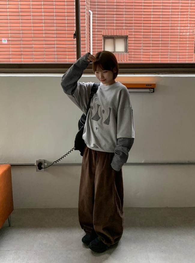 [男女兼用]パンピオ刺繍ストライプレイヤードスウェットシャツ