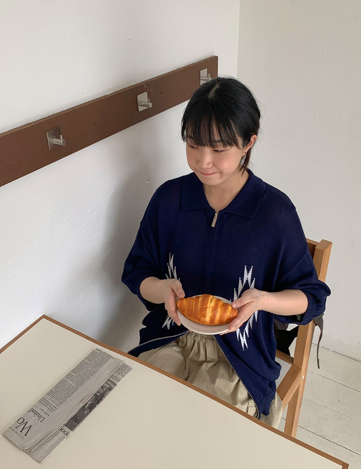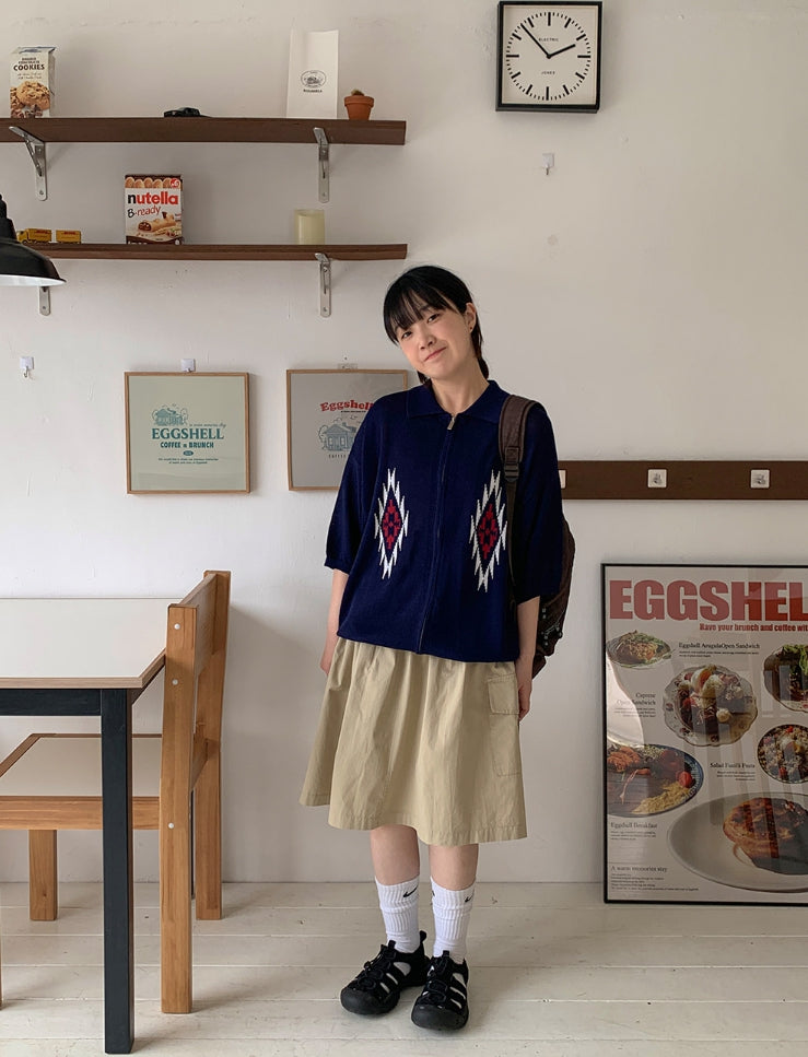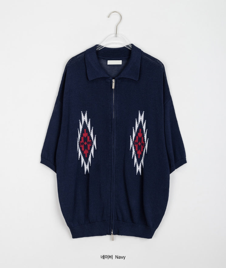 [unisex] Peulryu two-way short sleeve knit zip-up