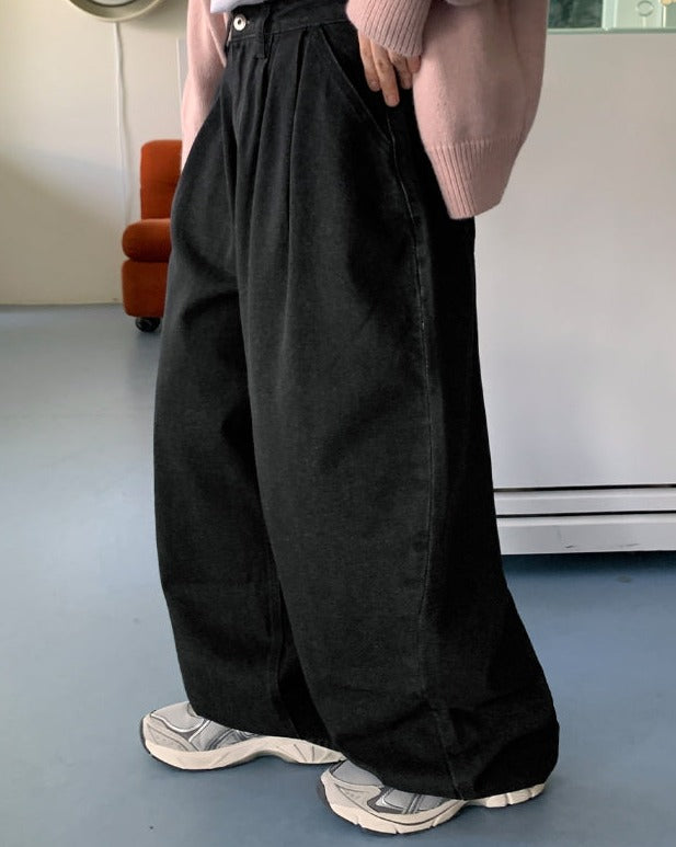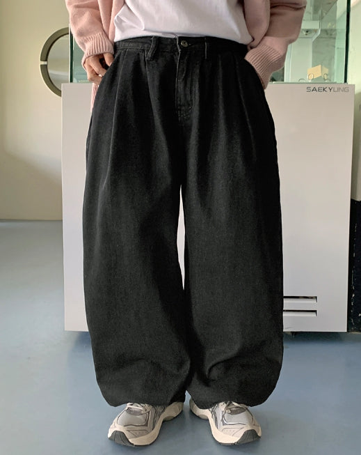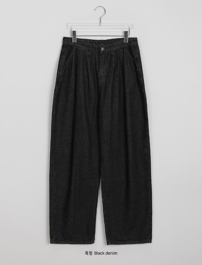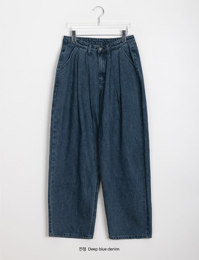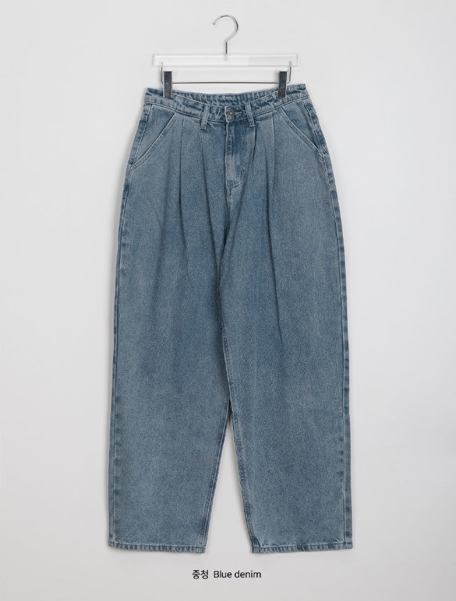 [男女兼用]ピコトピンタックワイドデニムパンツ
