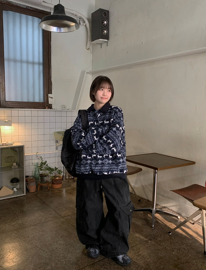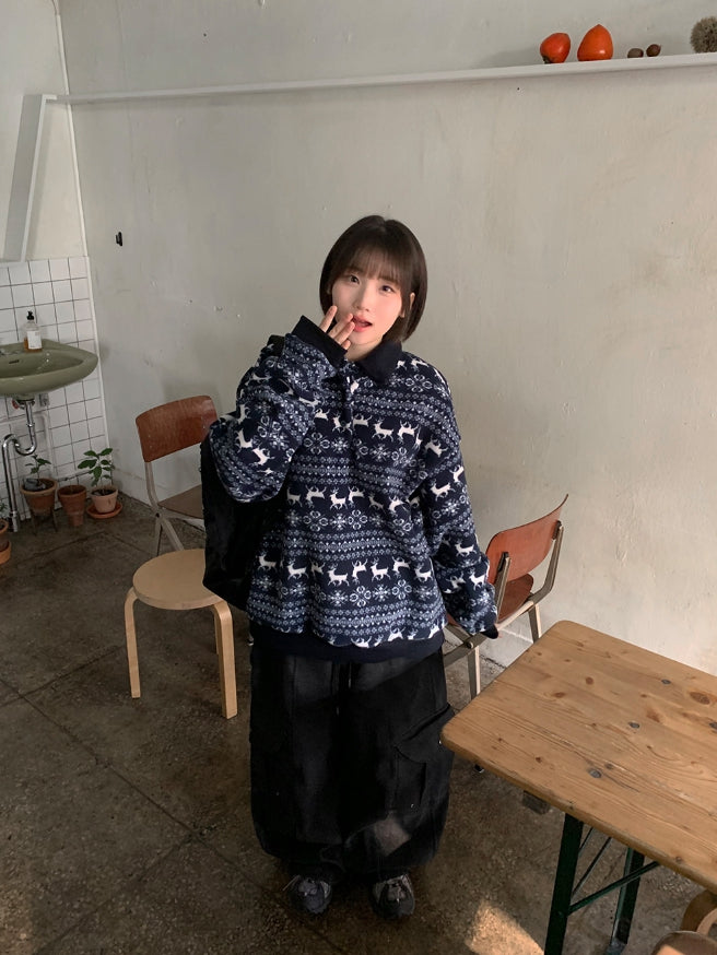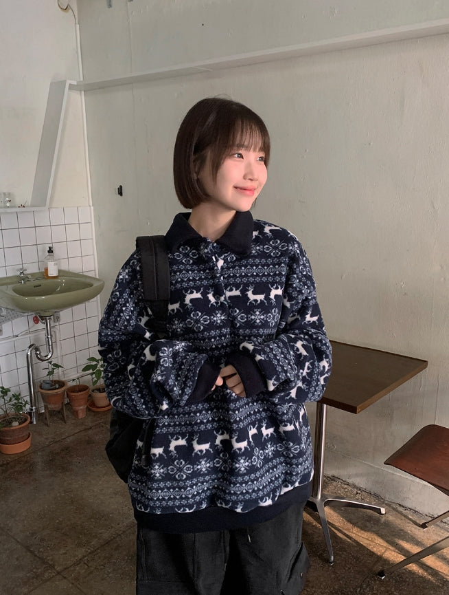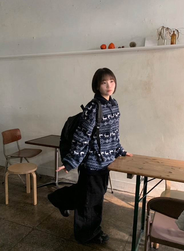 [男女兼用]ピクニノルディックフリースカラーオーバースウェットシャツ