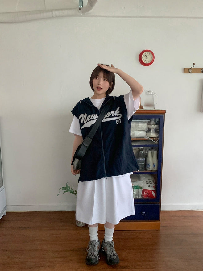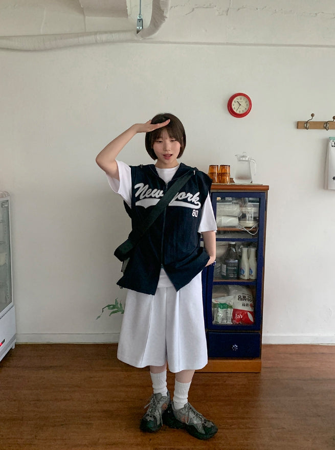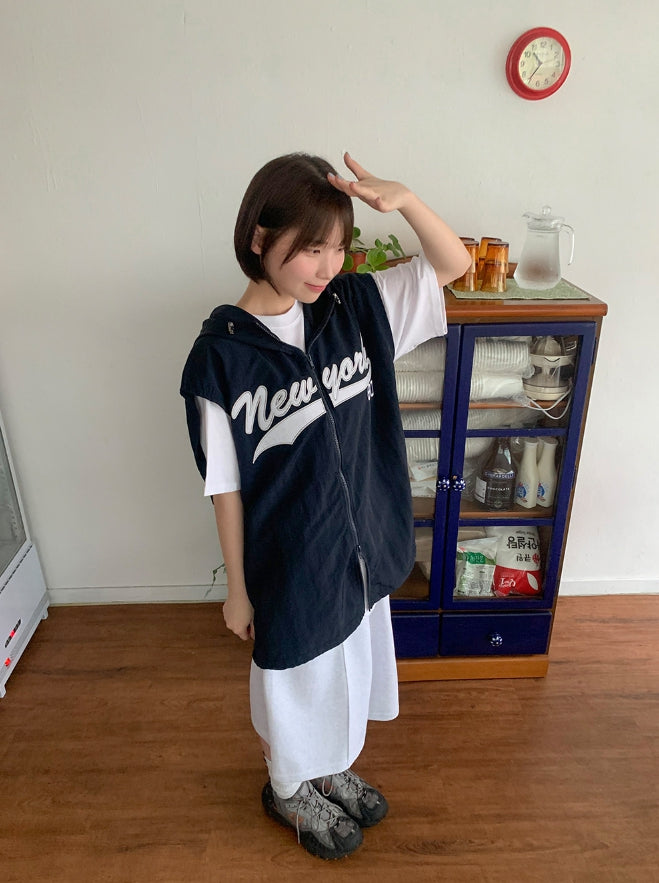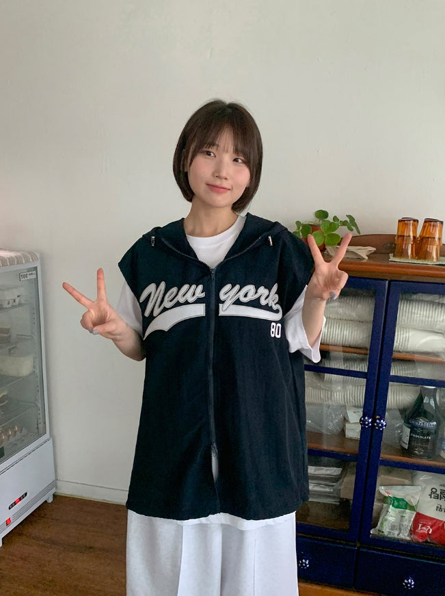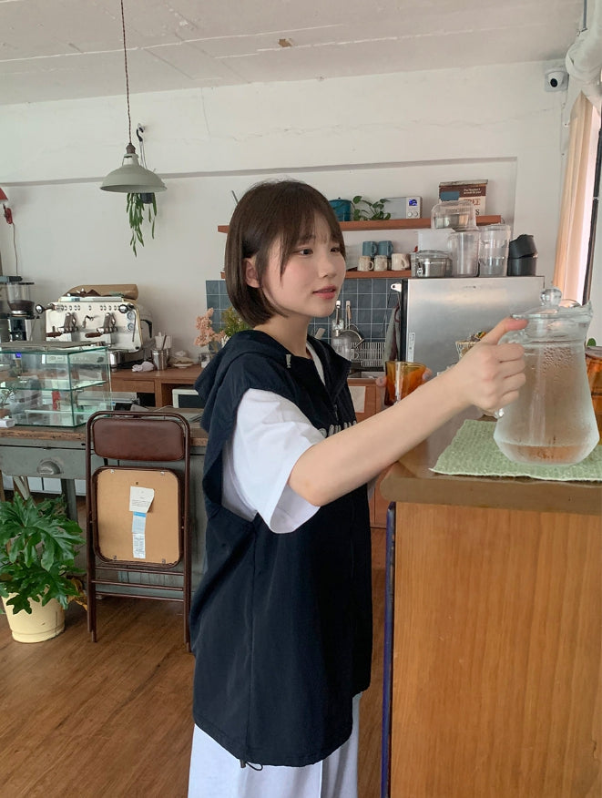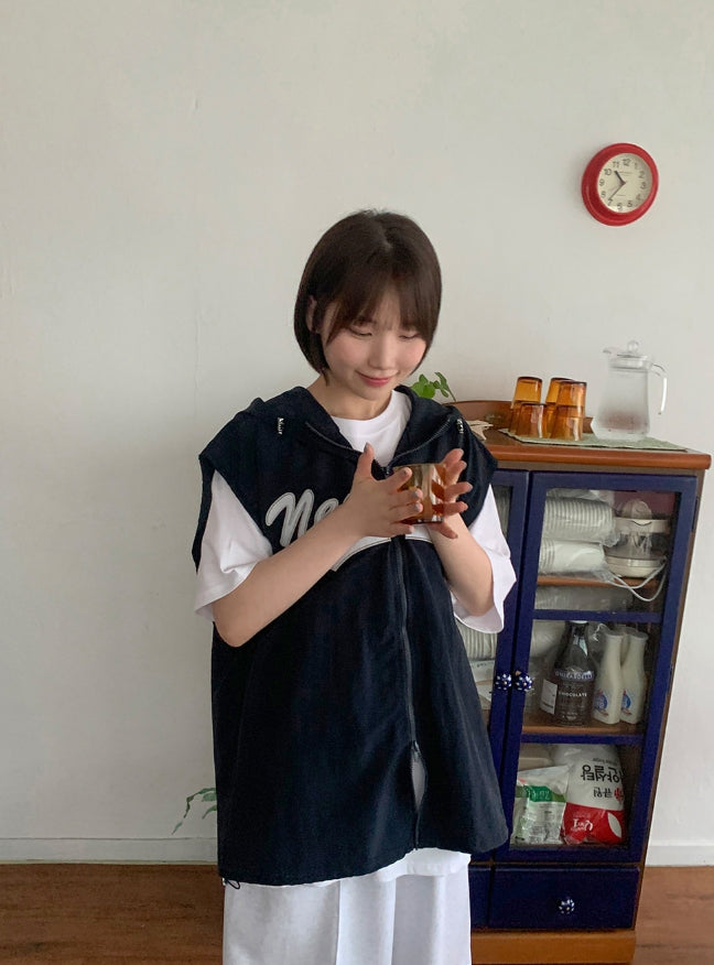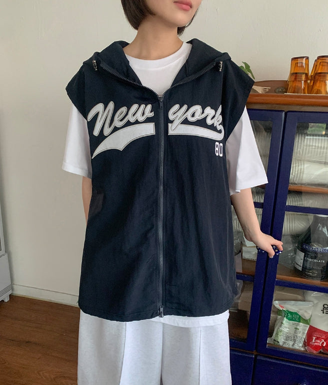 [unisex] Rollg Summer Embroidered Wind Hooded Vest