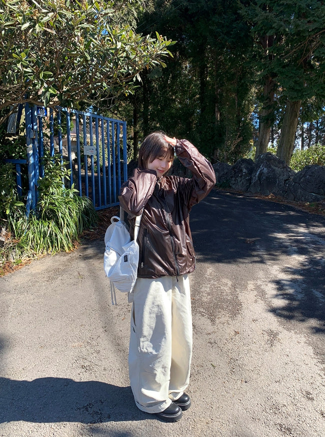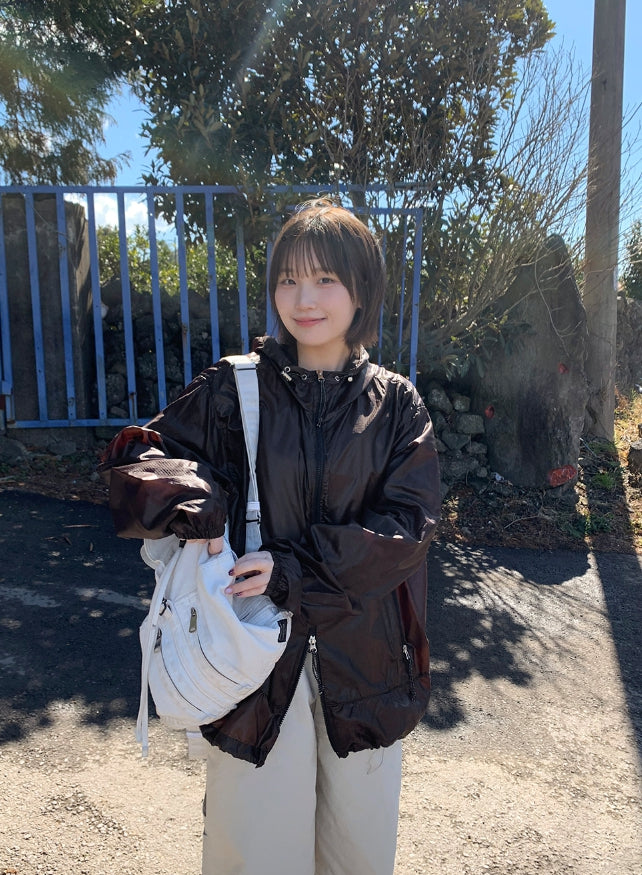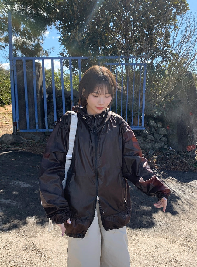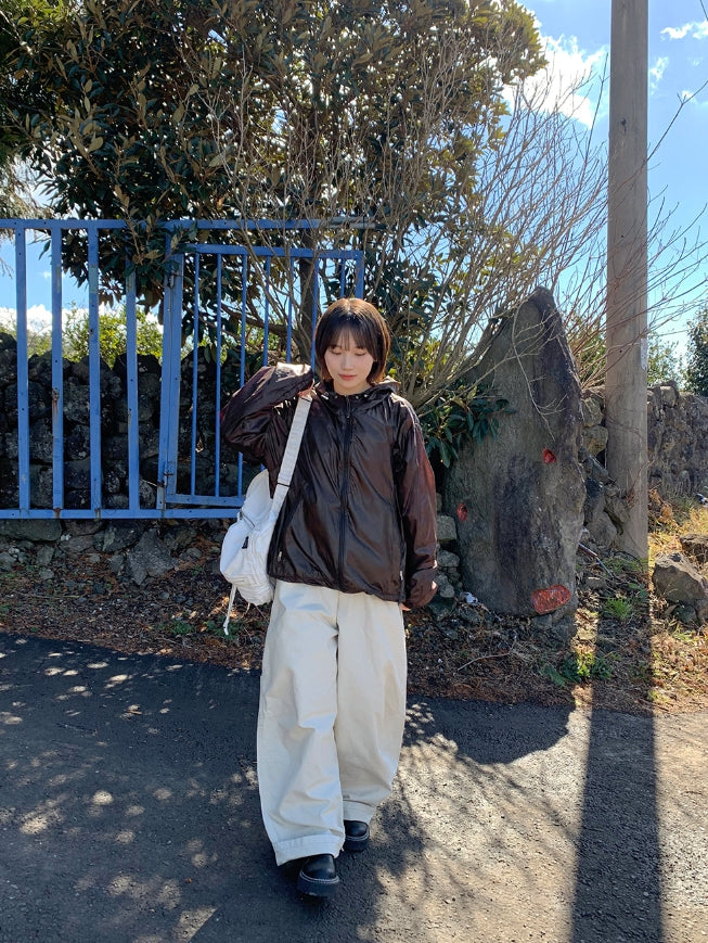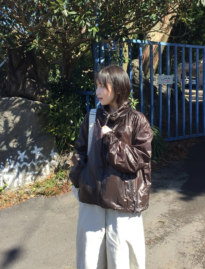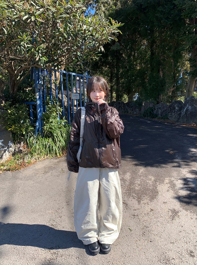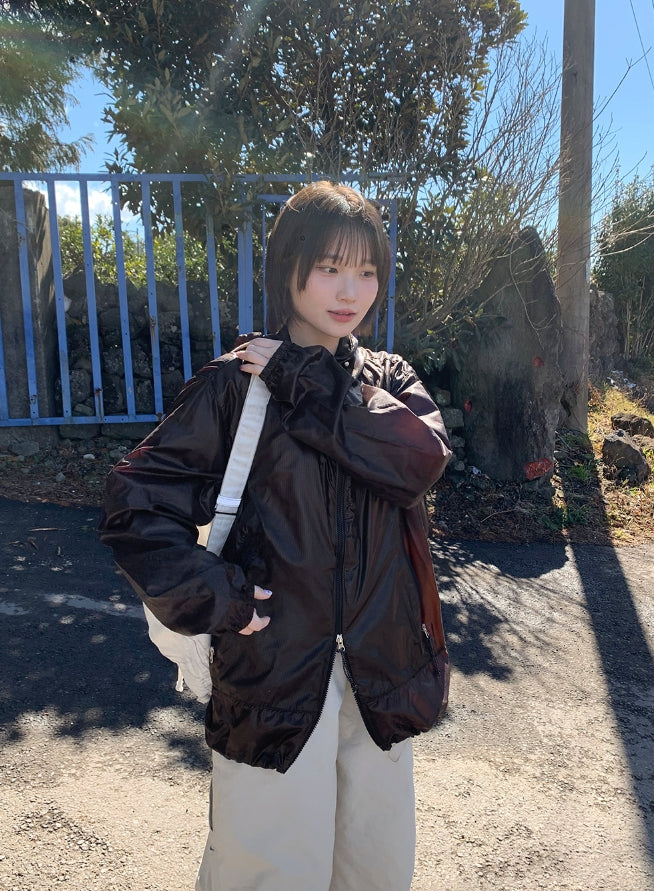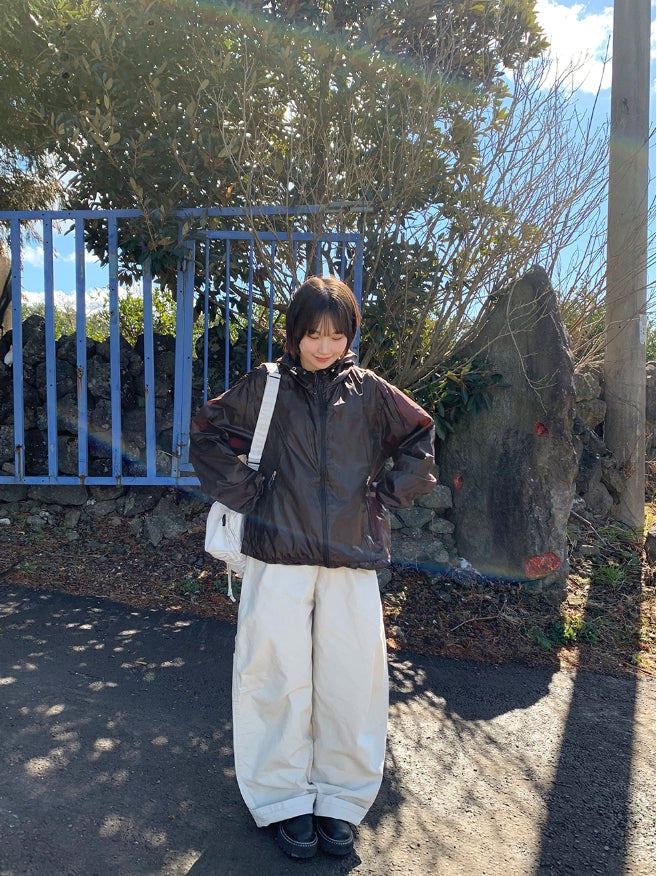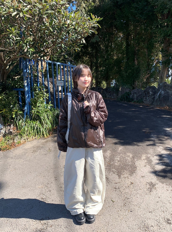 [unisex] Welkani Check Glossy Two Way Wind Jumper