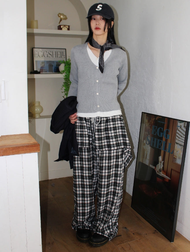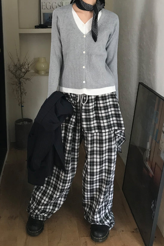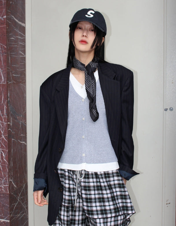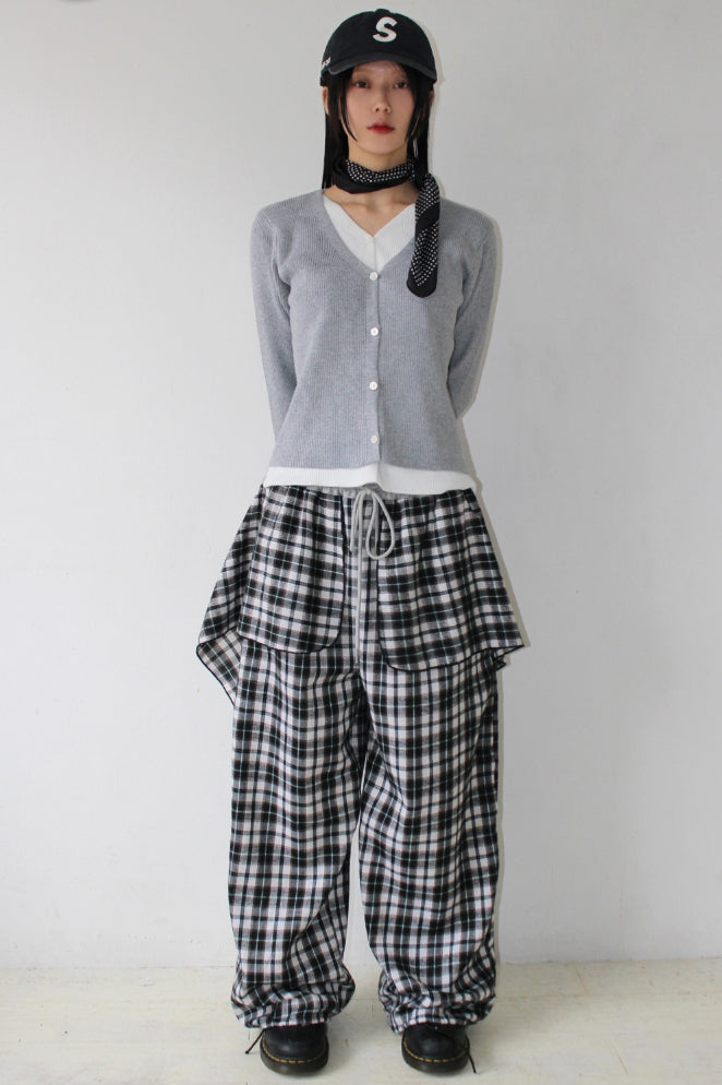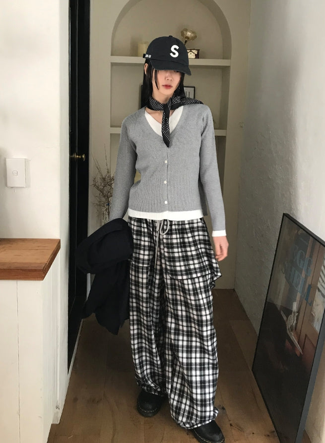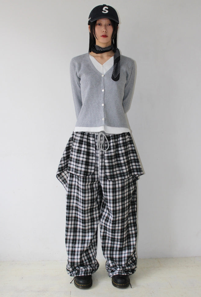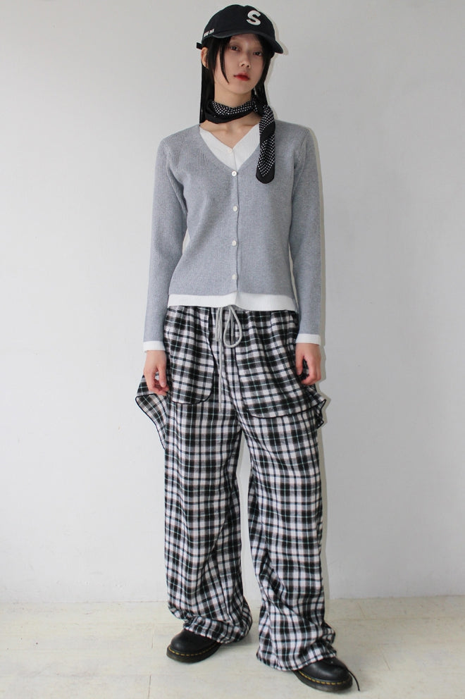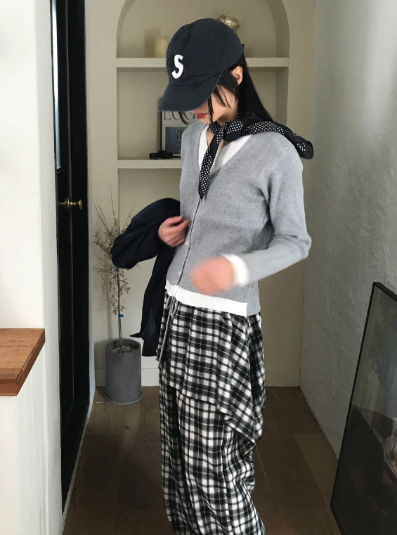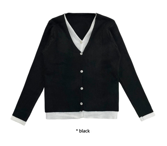 Vネックレイヤードカーディガン