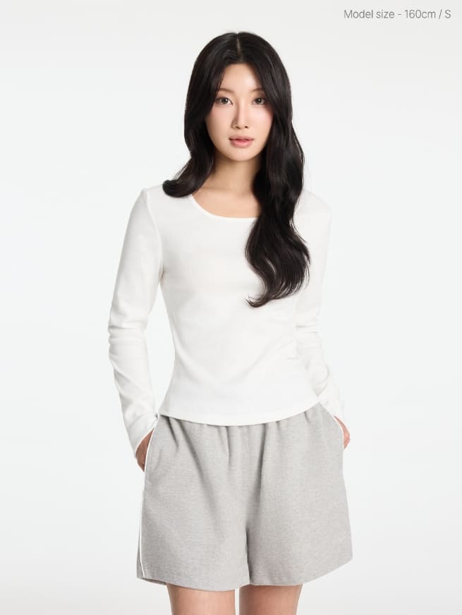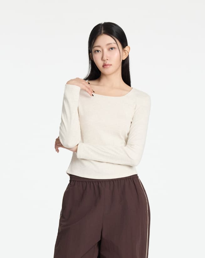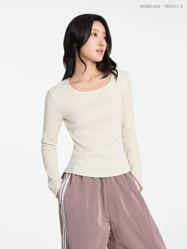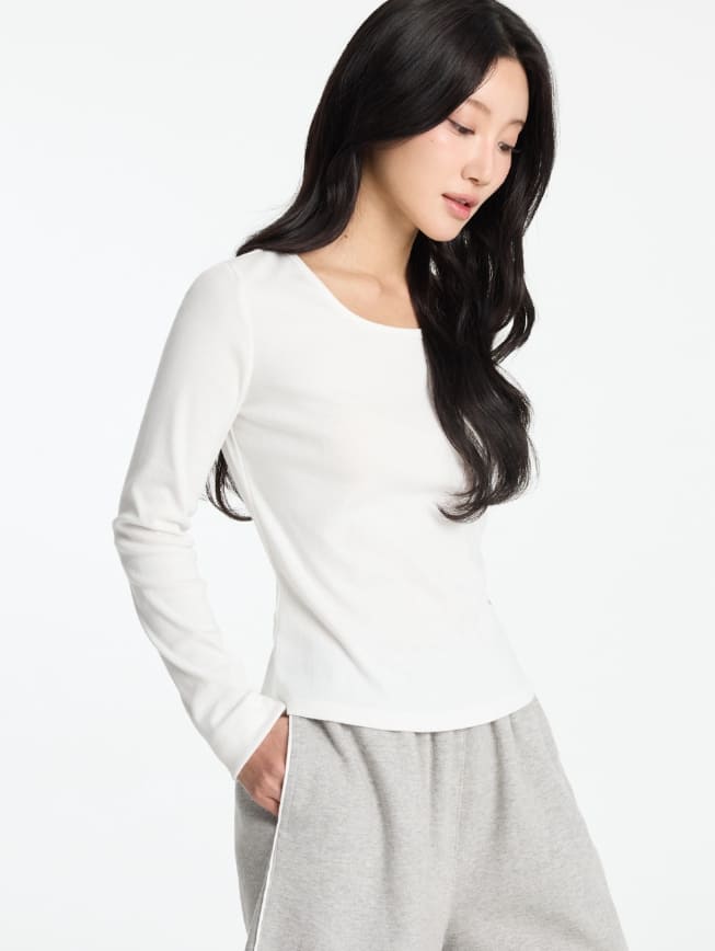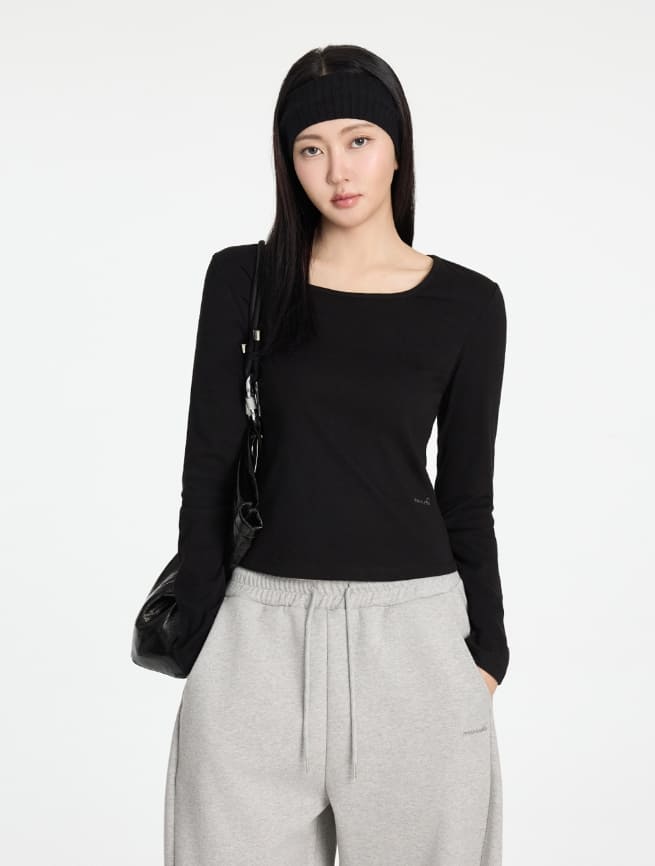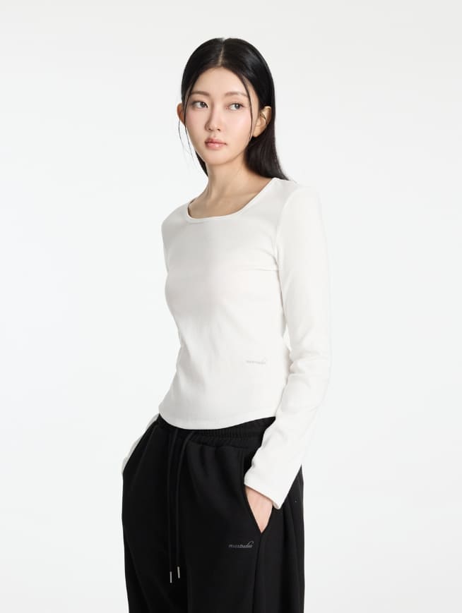 W Basic Round Square Neck Long Sleeve