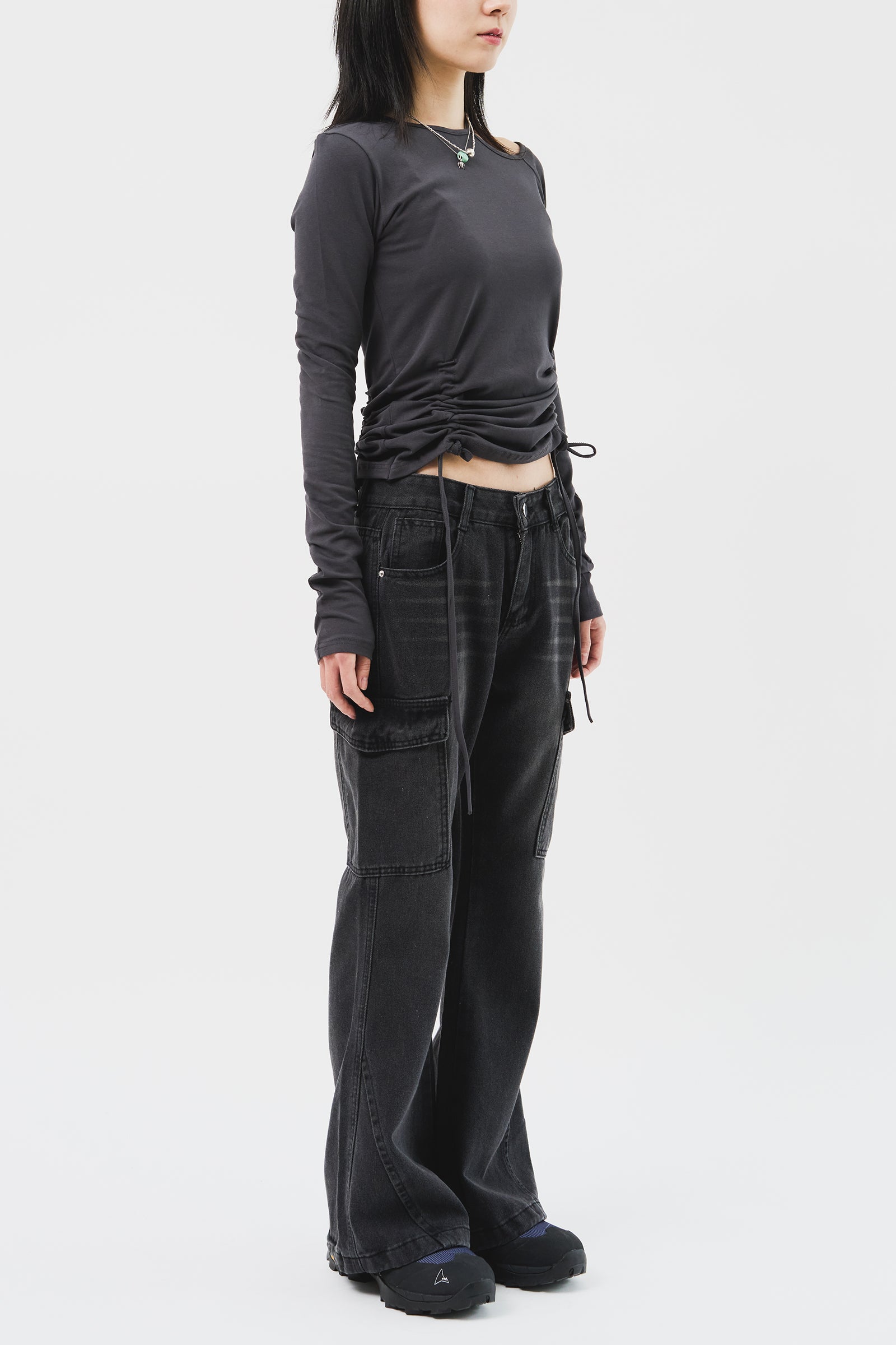 -S (ウエスト70 ヒップ94 股上26 股下71 もも周り58 裾周り60 総丈97)