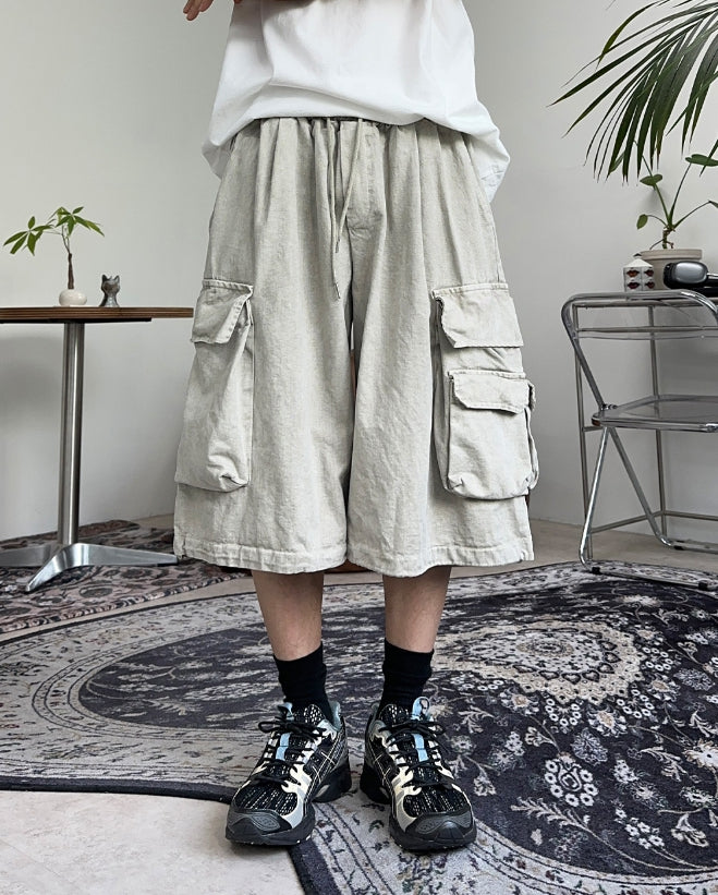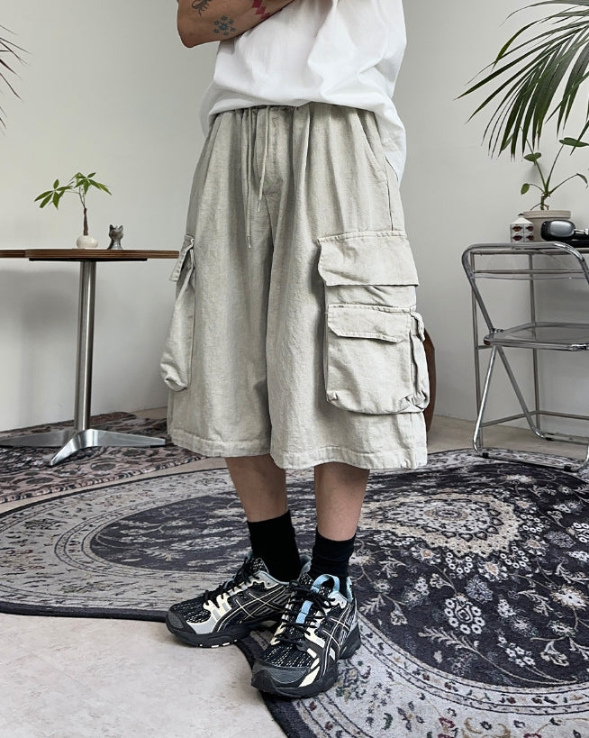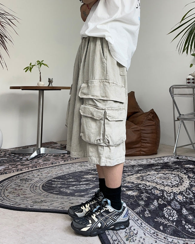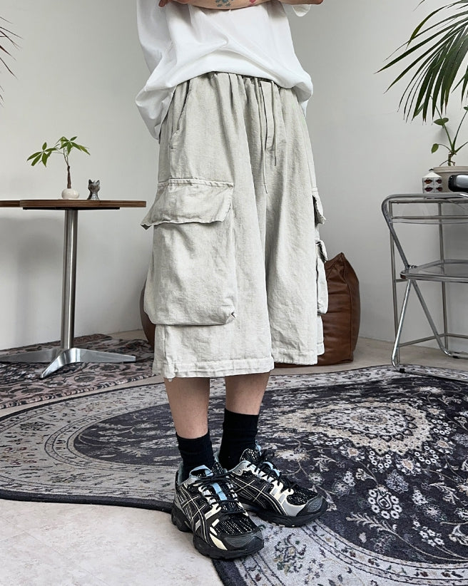 -ONE SIZE (ウエスト(ゴム)66-108 ヒップ116 股上32 股下32 もも周り80 裾周り80 総丈64)