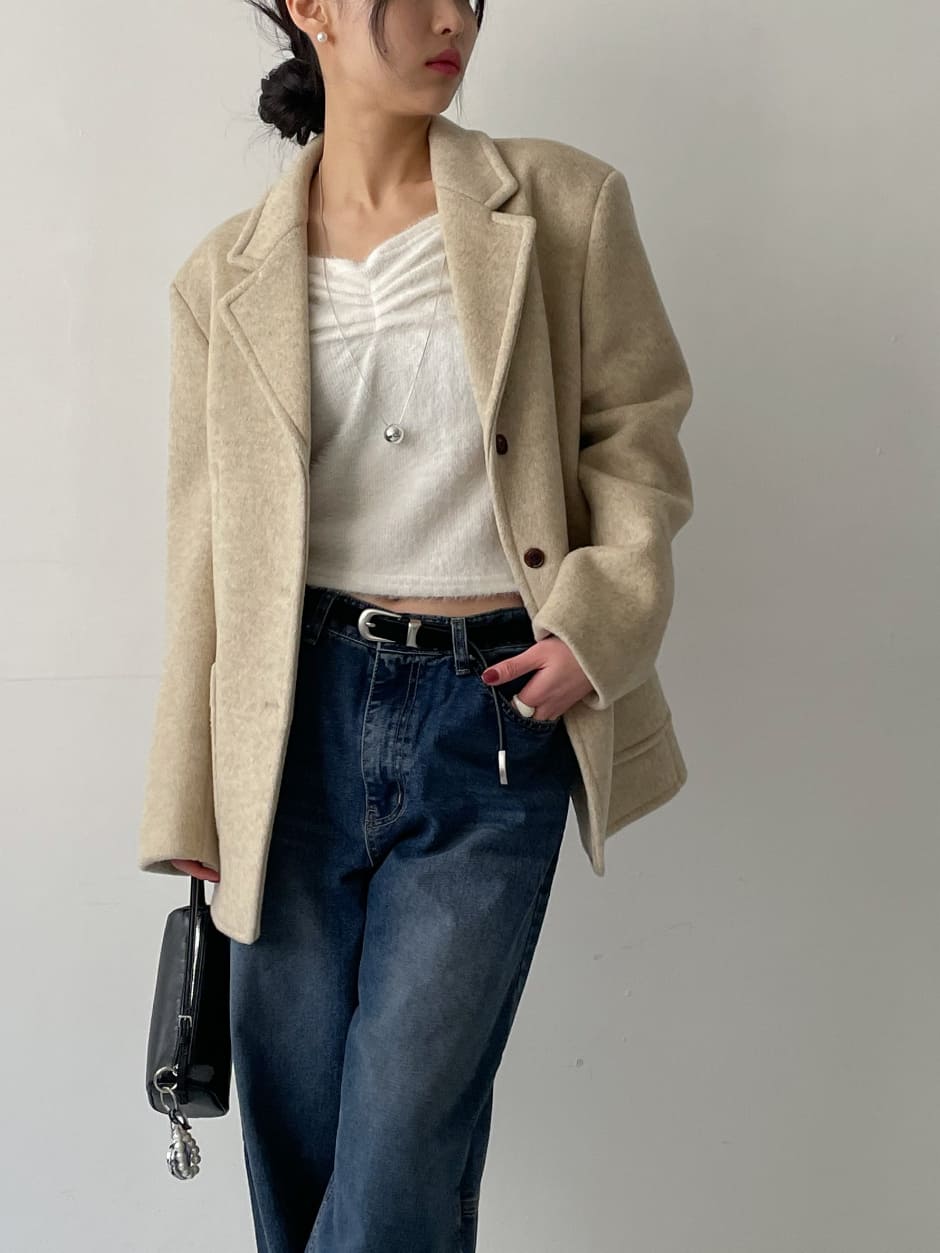 [ウール90%]ヘビーウールオーバーフィットシングルジャケット